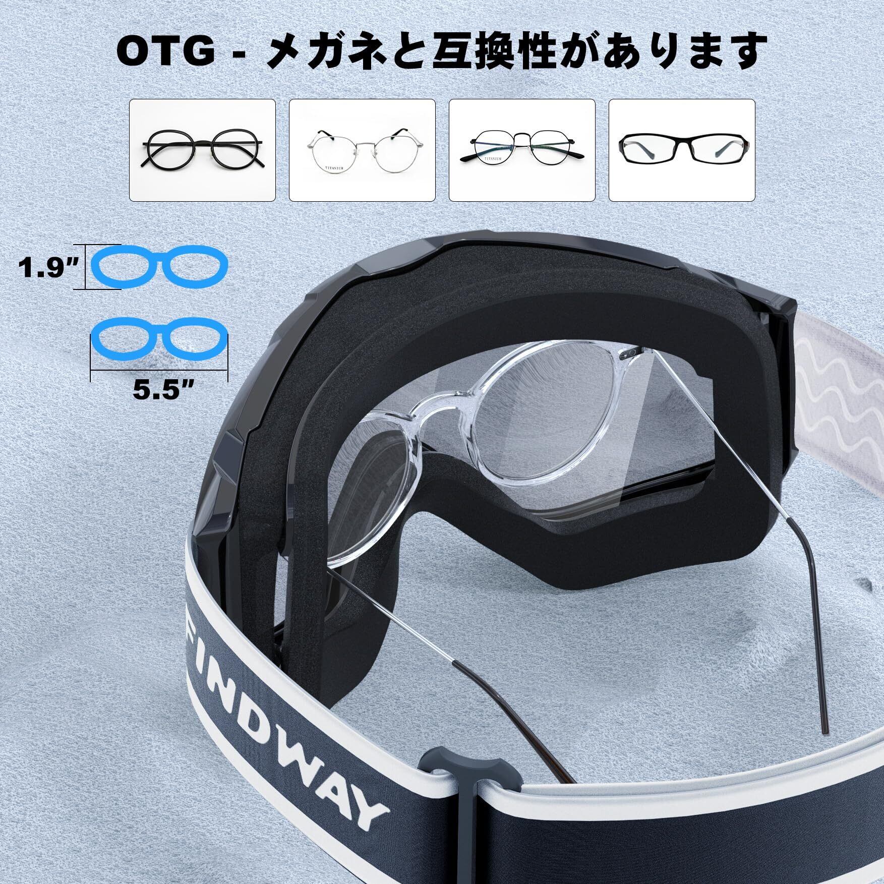 [Findway] スキーゴーグル スノーゴーグル スノーボードゴーグル アップグレードOTG広視野球面レンズ 防風/防雪/曇り防止 紫外線防止 メガネ対応 軽量と耐衝撃 適用大人男女の登山またはスキー用のスポーツゴーグル