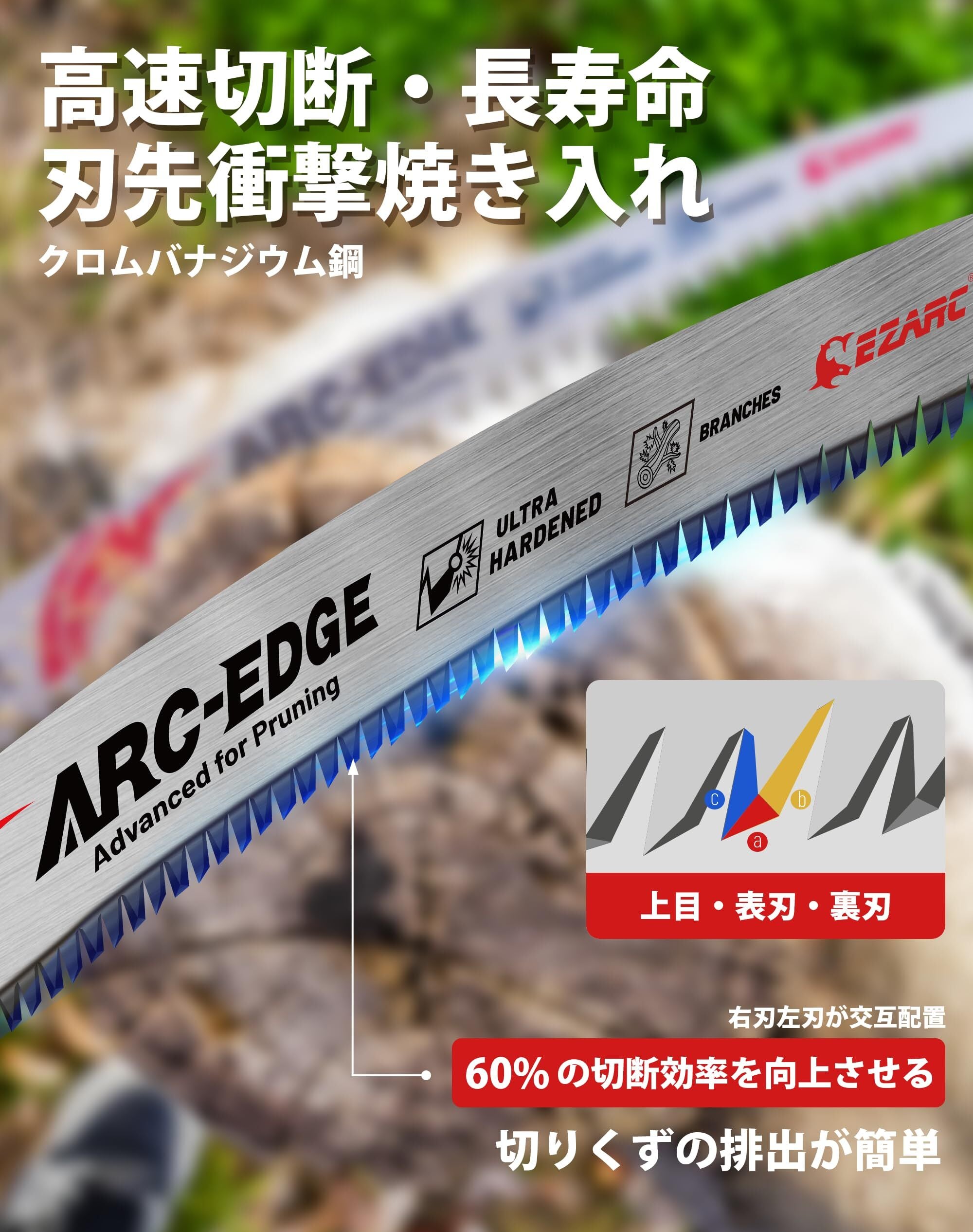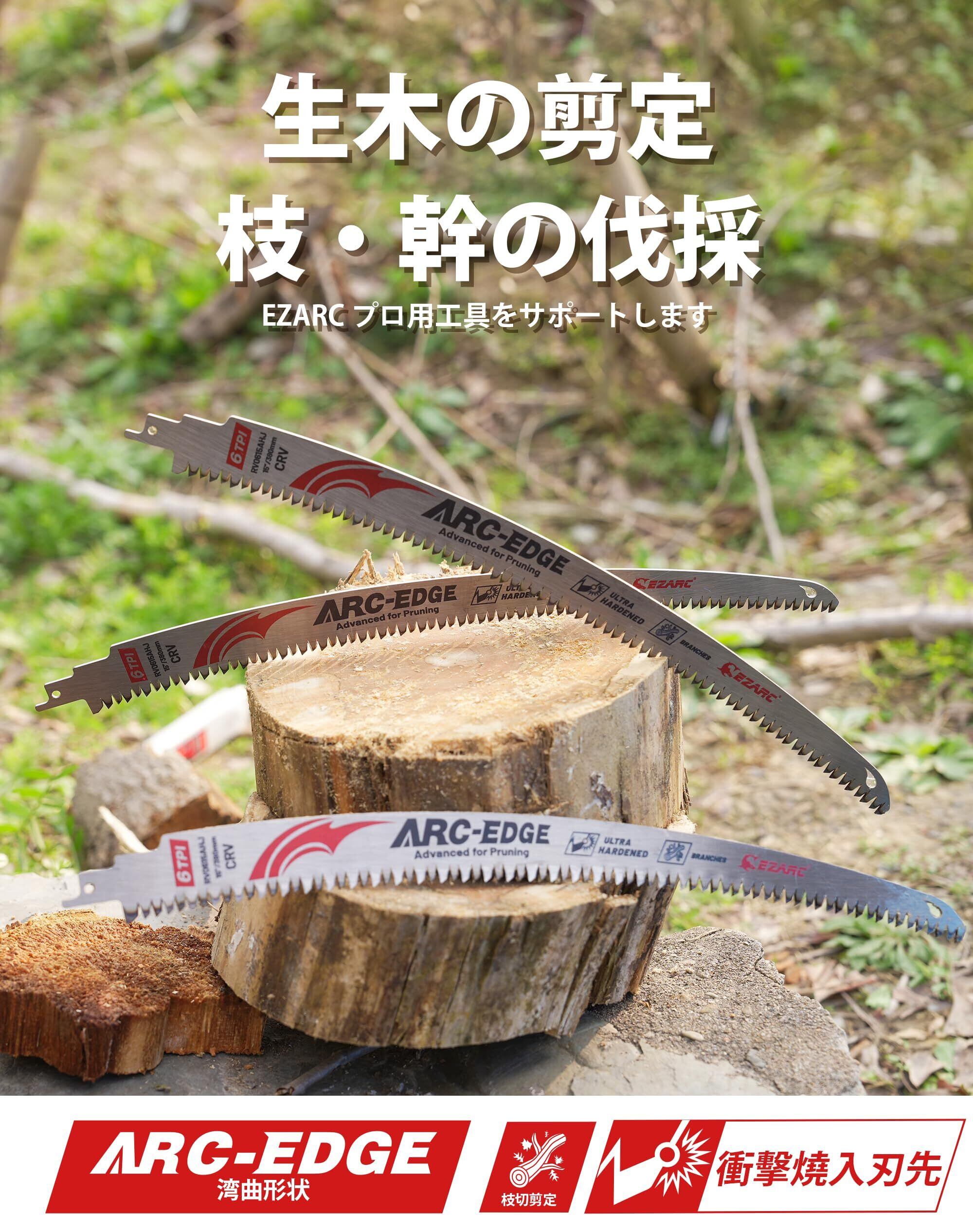 EZARC(イザーク) レシプロソー替刃 生木用 曲刃 全長380mm 6山 高速切断 クロムバナジウム鋼 衝擊燒入 長寿命 生木の剪定 枝・幹の伐採 (3本入)