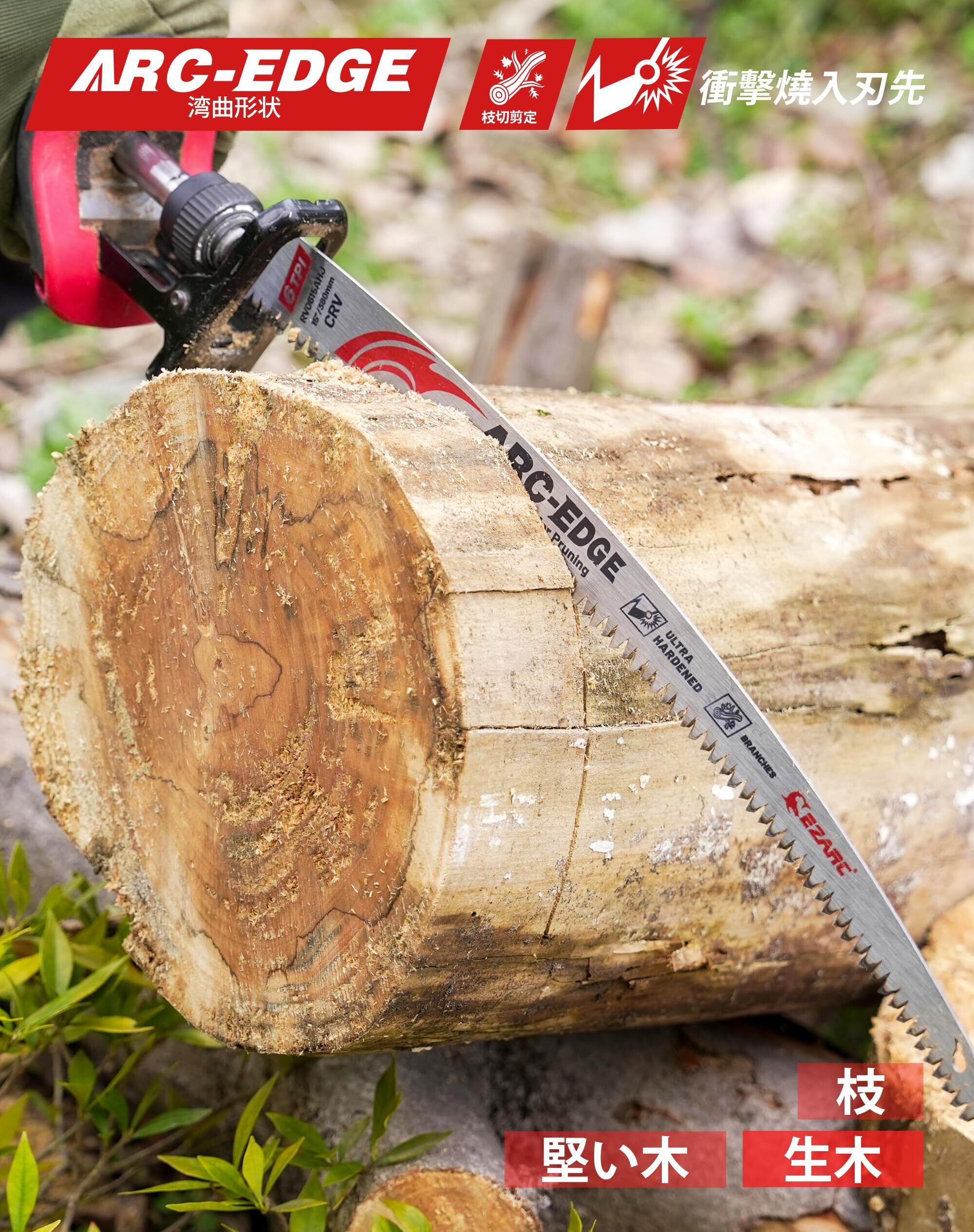 【生木・枝切用】生木の剪定、枝・幹の伐採用ノコギリ替刃です。衝擊燒入と研磨技術により、鋭くて切れ味抜群、庭木の剪定や、伐採に最適です。