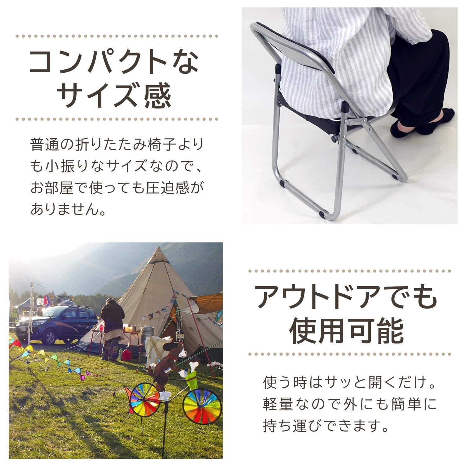 【赤澤朝陽】椅子 折りたたみ パイプ椅子 ミニチェアー 背付き 床に傷がつきにくい 折りたたみ椅子 和室 洋室 アウトドア キャンプ (ブラック)