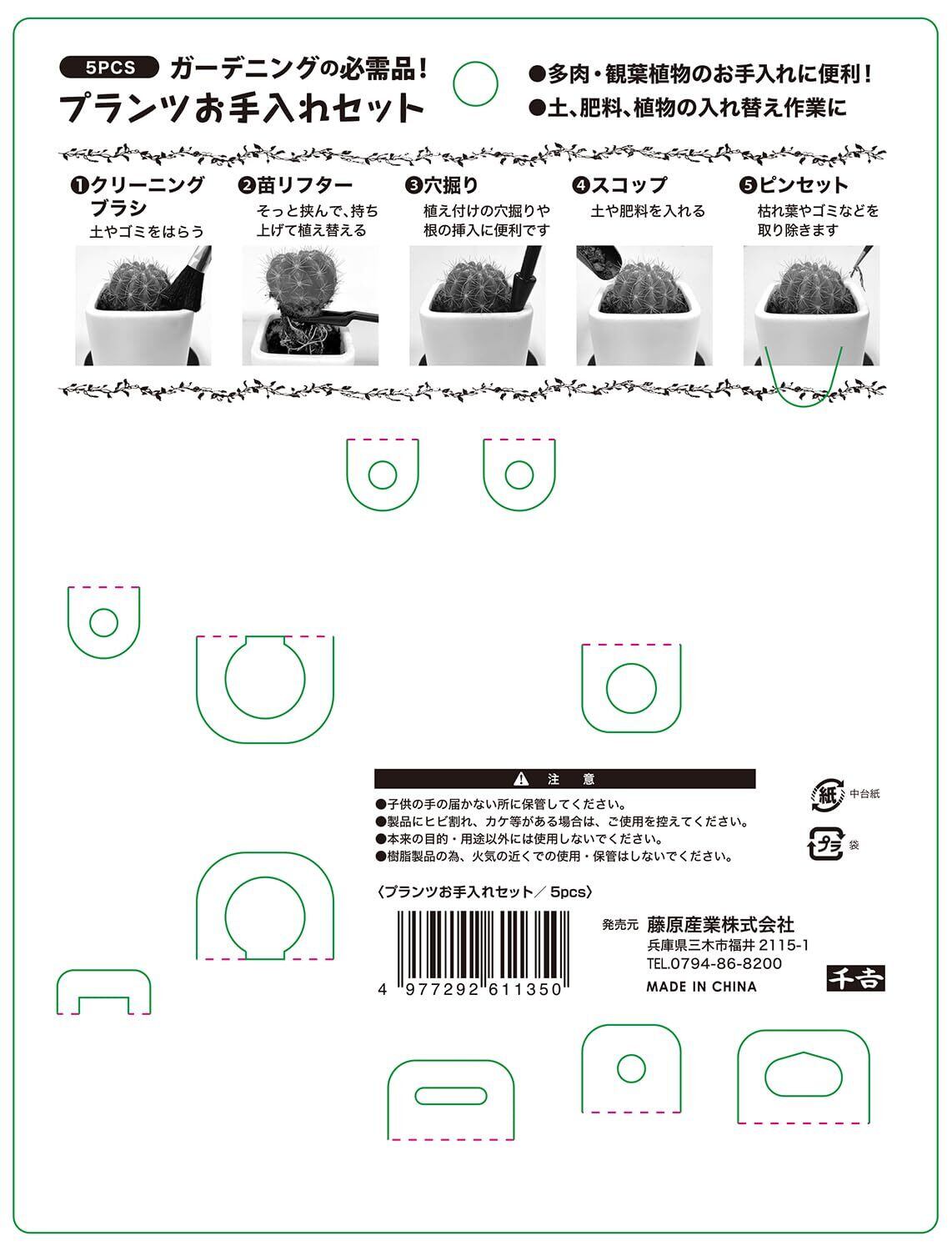 千吉 プランツお手入れセット 5pcs 多肉植物・観葉植物等のお手入れ 肥料・植物の入れ替え作業 セット内容:スコップ・穴掘り・苗リフター(植え替えツール)・クリーニングブラシ(ハケ)・ピンセット | ニコニコshops