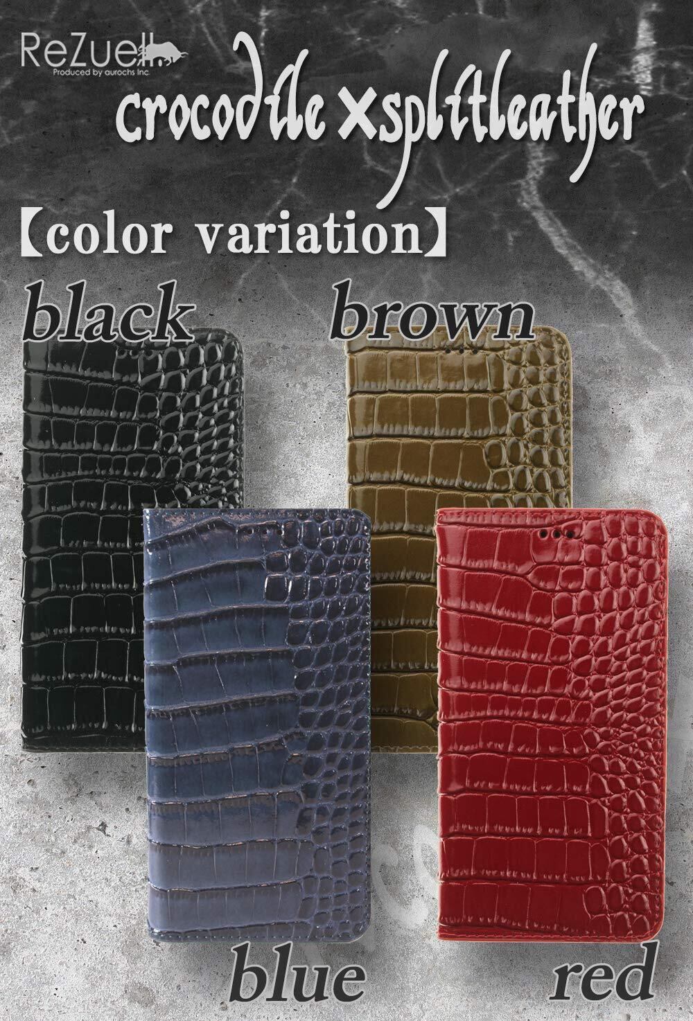 ReZuell. スマホケース クロコダイル 牛革 手帳型 レザー ケース iphoneX/XS ブラック