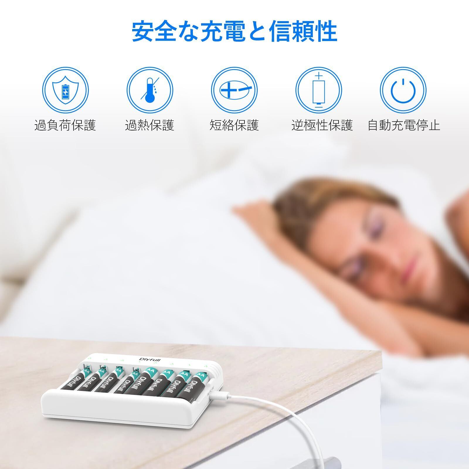 Dlyfull 電池充電器 単4 単3 充電池 充電器、USB Type-C入力 8スロット単三 単4 充電器/充電式ニッケル水素電池 充電器/ニカド充電池に対応 同時充電 LEDライト 単3 バッテリー 充電器 エネループ 充電器 単3 充電池充電器 (白色)