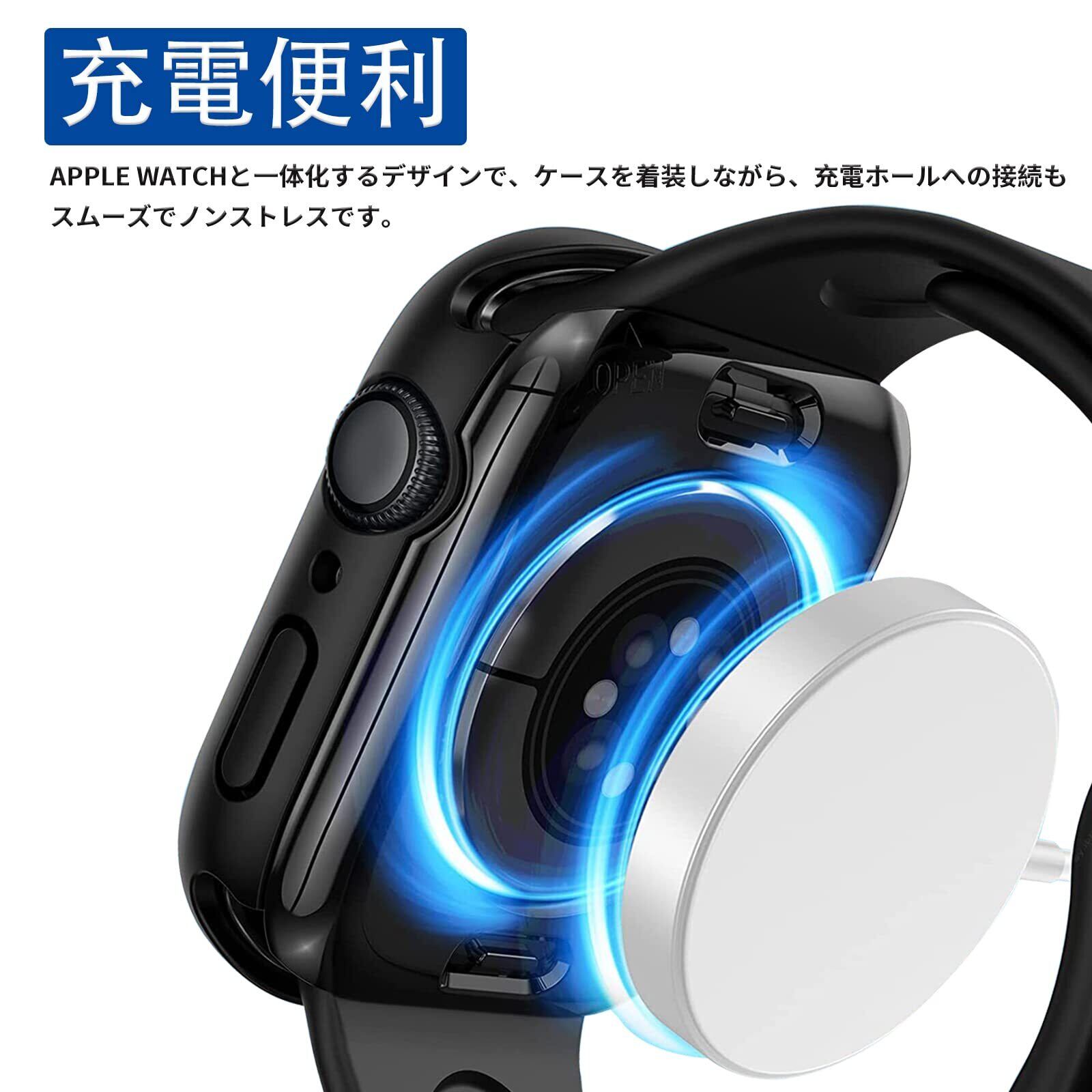 【究極の一体感】3 in 1一体型カバー(背面カバー+ガラスフイルム+側面カバー)。アップルウォッチを基に、精確に設計されておりぴったりとアップルウォッチと密着しボタンまで守り、抜群の一体感です。そして、バンド部分との干渉もなく、保護ケースを装着したまま充電出来とても便利です。