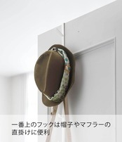 一番下の フックは子供が届く位置なので子どものコートを掛け、 上のフックには大人の帽子とバッグなどを掛けると便利。