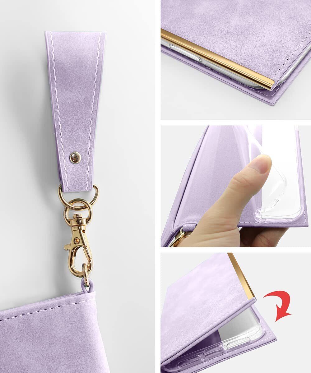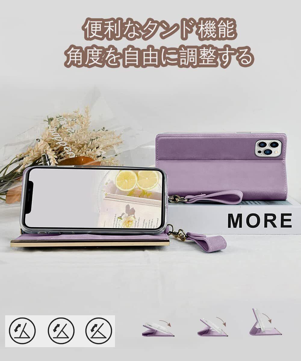 OCTERR iPhone 13 pro ケース 手帳型 鏡付き マグネット式 スマホケース 財布型 アイフォン13プロカバー カードポケット スタンド機能 携帯ケース ダイアリーケース PUレザー 女性 耐衝撃 全面保護 ファッション おしゃれ 美しい パープル | ニコニコshops