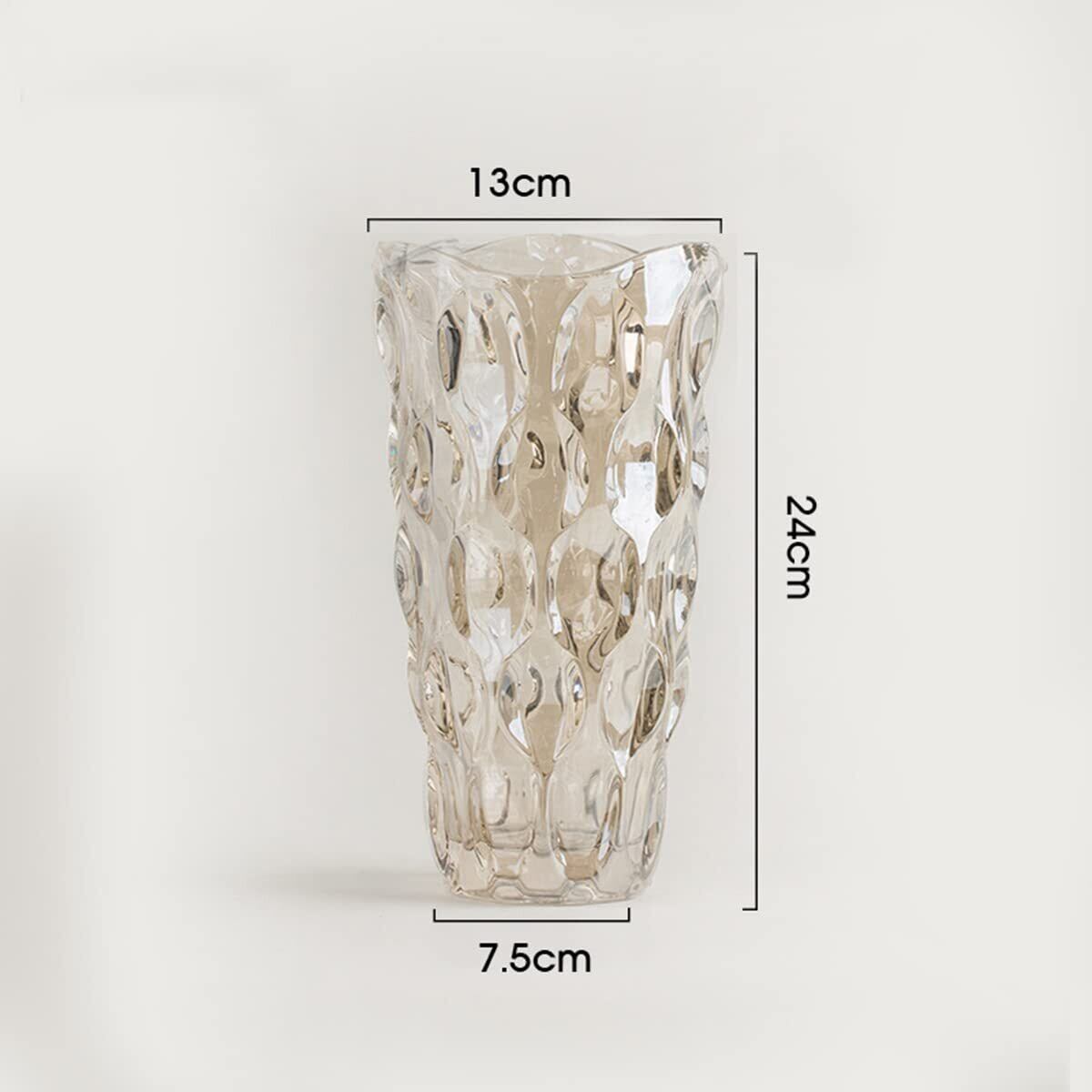 ガラス フラワーベース 透明 花瓶 ガラス おしゃれ 大 花瓶 北欧 花瓶 30cm グラデーション 現代 シンプル 透明 広口 花器 部屋 玄関 リビング インテリア プレゼント (シャンペン色-24cm)