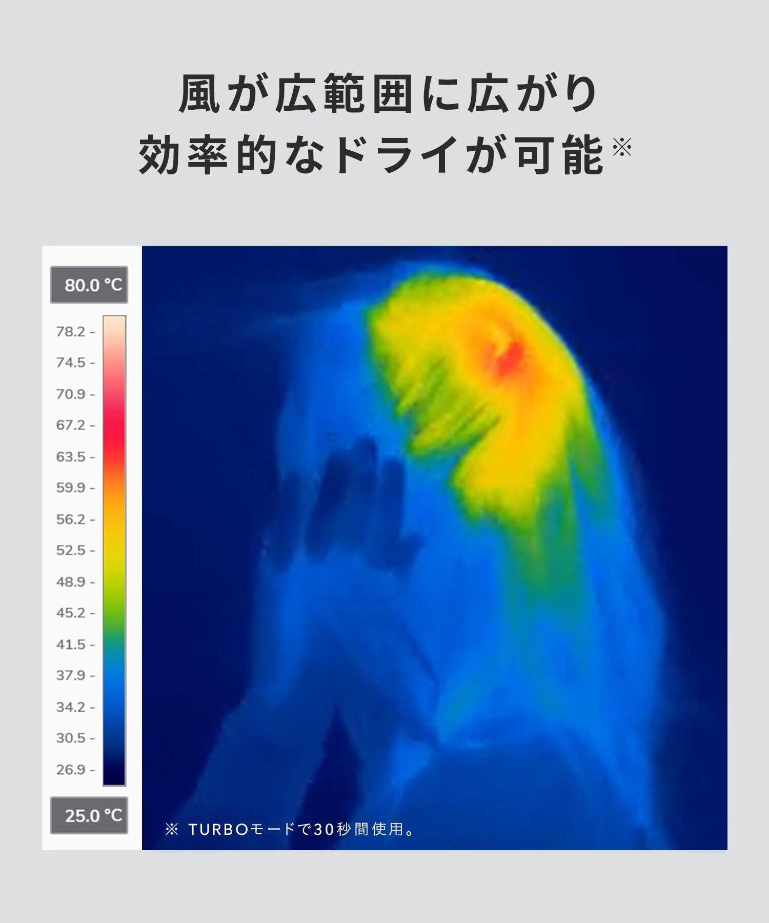 【2.3㎥/minの大風量】ドライ時間30%短縮を実現。面倒なドライ時間を短縮できる大風量ドライヤー