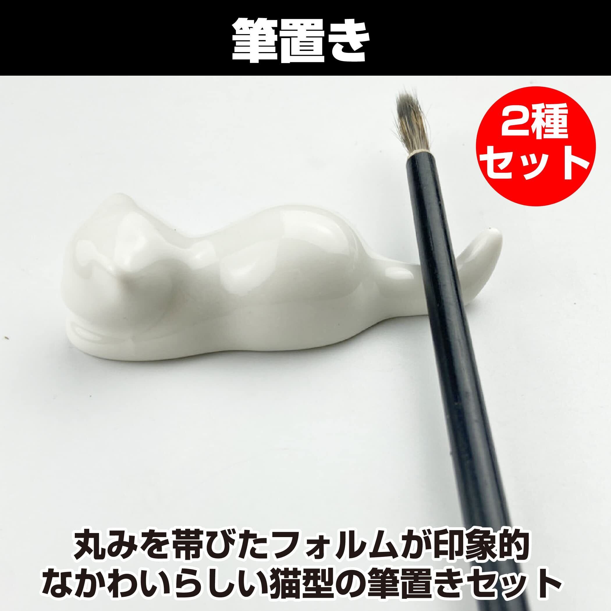 猫好きの方におすすめ:丸みを帯びたフォルムが印象的なかわいらしい猫型の筆置きセットです。書道や習字の練習の際に役立ってくれることでしょう。猫好きの方におすすめのセットとなっています。