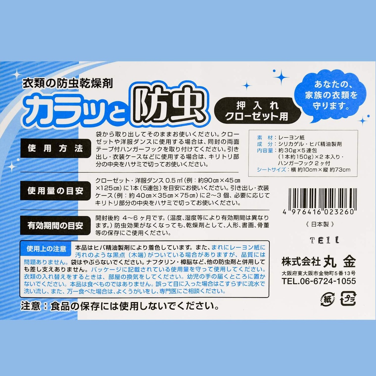 丸金(Marukin) 乾燥剤 防虫剤 押入れクローゼット カラッと防虫 30gx10包 日本製 023260 ホワイト 10×73cm