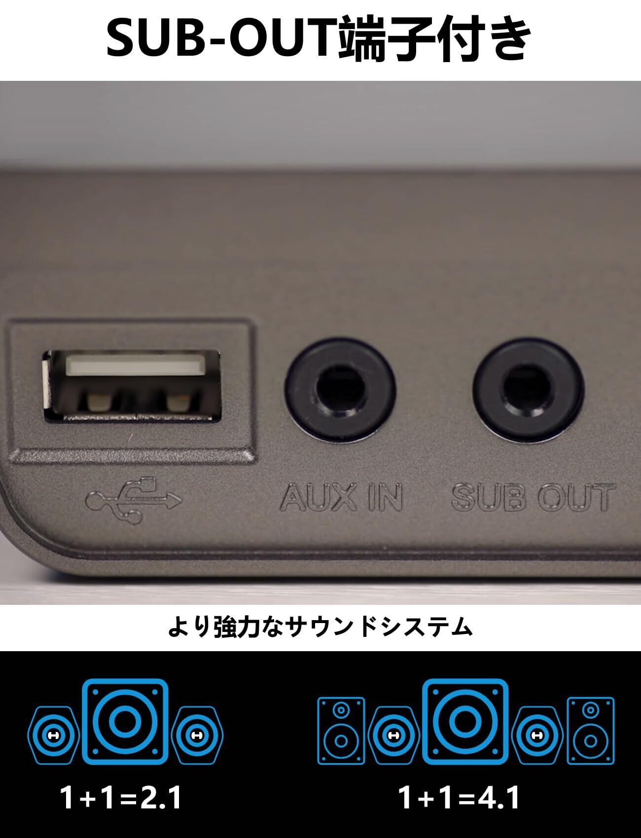 【SUB-OUT端子付き】Subout端子を使って他の2.0、2.1、5.1スピーカーやサブウーファーに接続し、より強力な4.0、2.1、4.1、7.1サラウンドサウンドシステムを構築し、さまざまな音の豊かな細部を向上させ、ゲームや映画の臨場感と没入感を高めます。