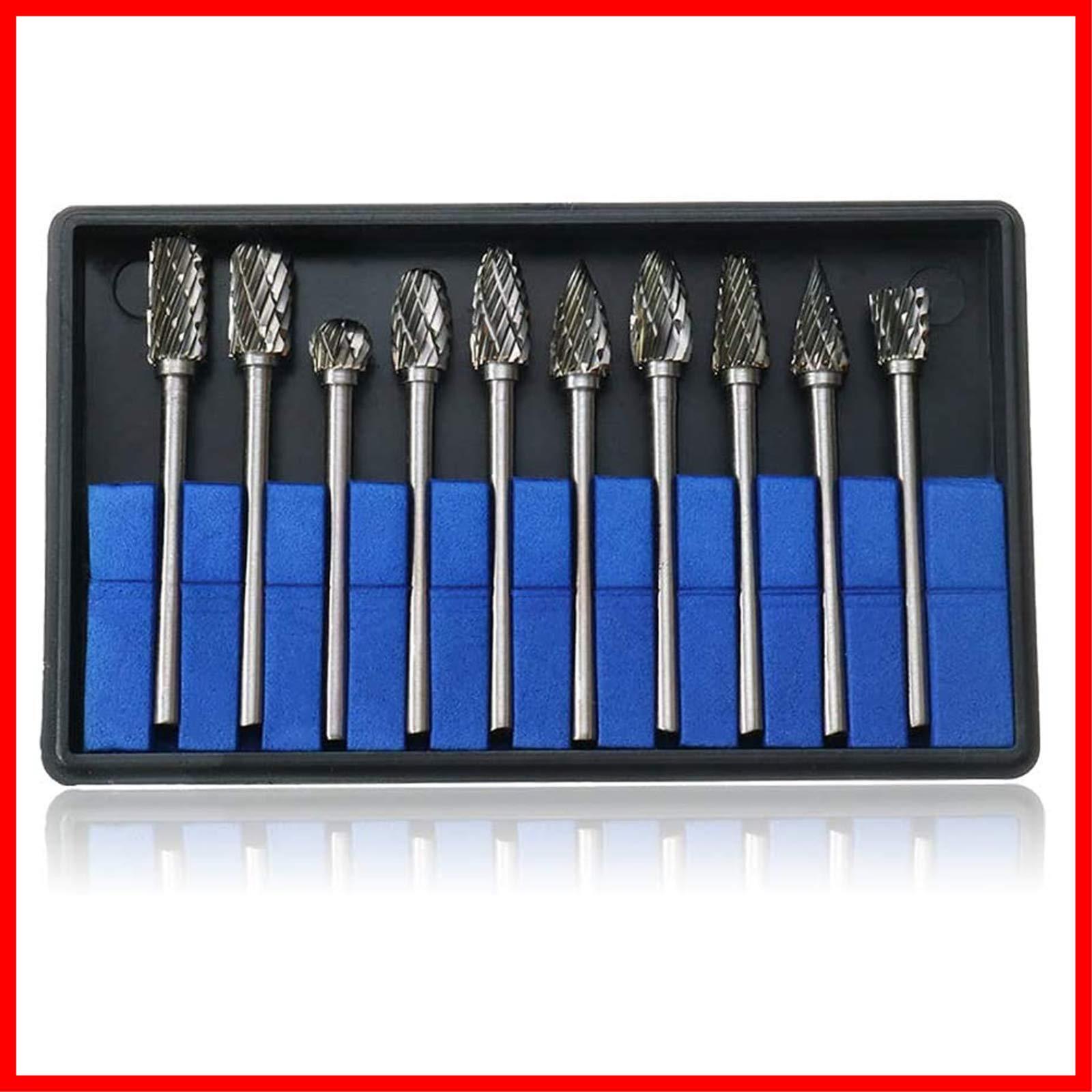 YFFSFDC 超硬バー リューター ビット 10種類 10本セットタングステン製 リューター ビット 超硬ドリルビット 3mm 軸 刃幅6mm (50mm長)