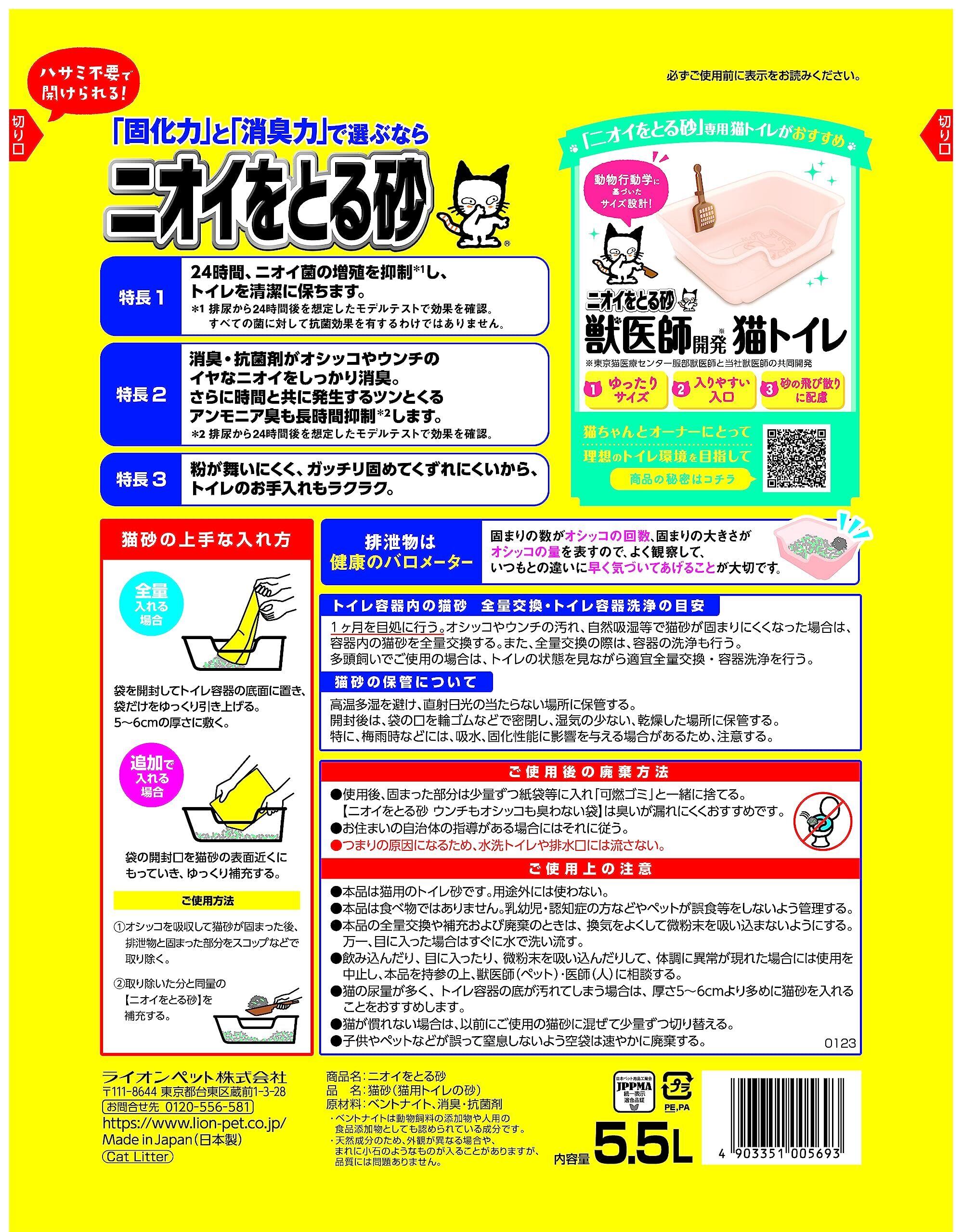 ライオン 猫砂 ニオイをとる砂 5.5Lx4袋 ケース販売 鉱物タイプ LION PET