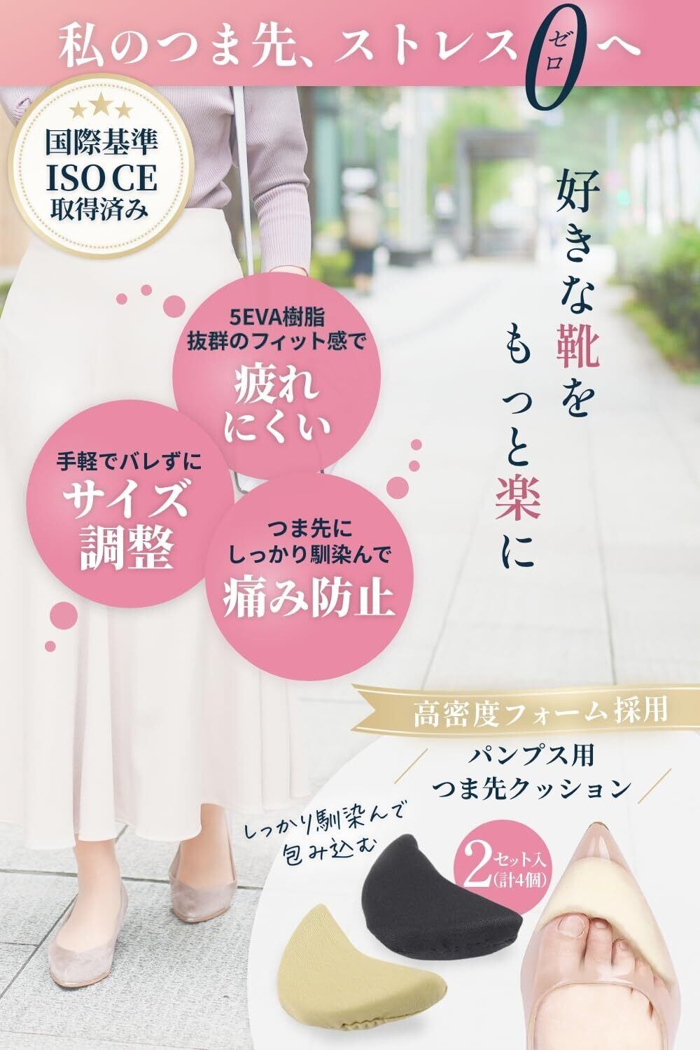 【国際基準ISO CE規格 取得済】爪先クッション 靴サイズ調整 4個入り 靴擦れ防止 つま先用インソール パンプス [衝撃吸収 高密度フォーム採用 つま先クッション] (ブラック, 4個入り) | ニコニコshops
