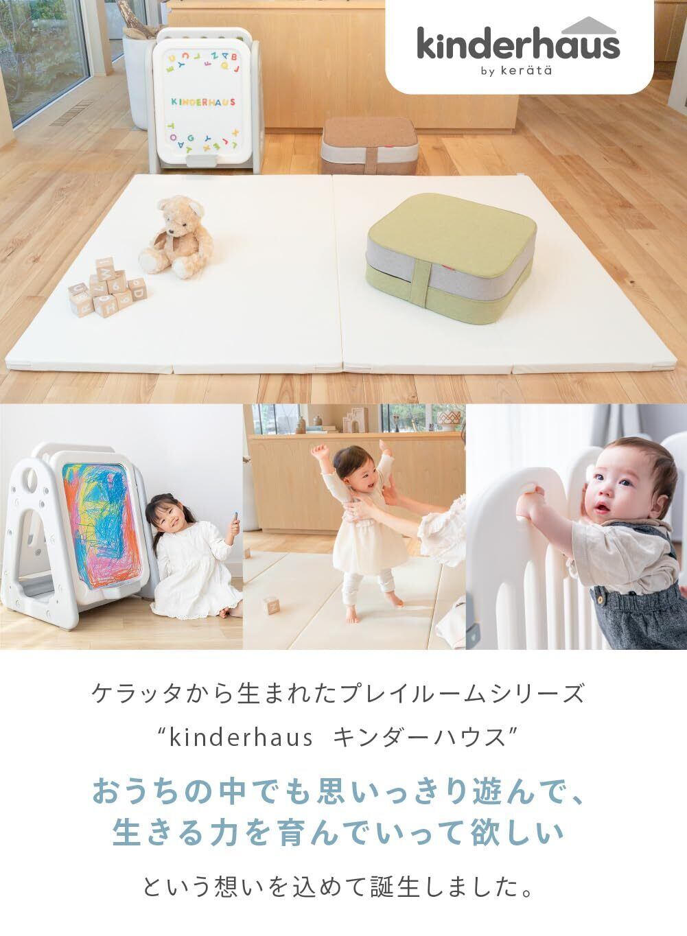 【防音プレイマット】わんぱくなお子さまが転んでも、転がっても、飛び跳ねても大丈夫!使い心地、座り心地、防音・はっ水等の機能性など、ママ・パパや子ども目線の「うれしい!」がいっぱいのプレイマットです!溝なしシームレスタイプなので従来のプレイマットのようにすき間にゴミが入らずいつでも清潔