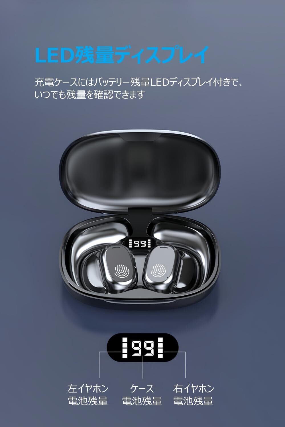 イヤホン bluetooth ワイヤレス 耳掛け式 オープンイヤー イヤホン OWS Bluetooth5.3 耳掛け式 最大36時間再生 ブルートゥース Hi-Fi音質 LEDディスプレイ Type-C充電 左右独立 タッチボタン (ブラック)