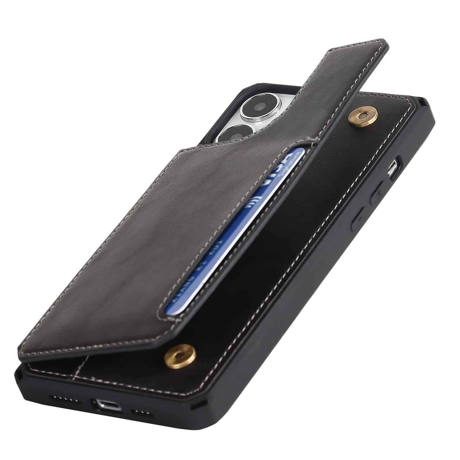 Pelanty iPhone 13 pro ケース iPhone13 pro ケース アイフォン13 pro ケース縄掛け 6.1インチ 背面 手帳型 PUレザー IC カード収納 軽量 スタンド機能 ボタン磁気 多機能 iPhone 13pro スマホケース 耐衝撃 滑り防止 全面保護 ストラップ 携帯カバー[5色選択]ブラック