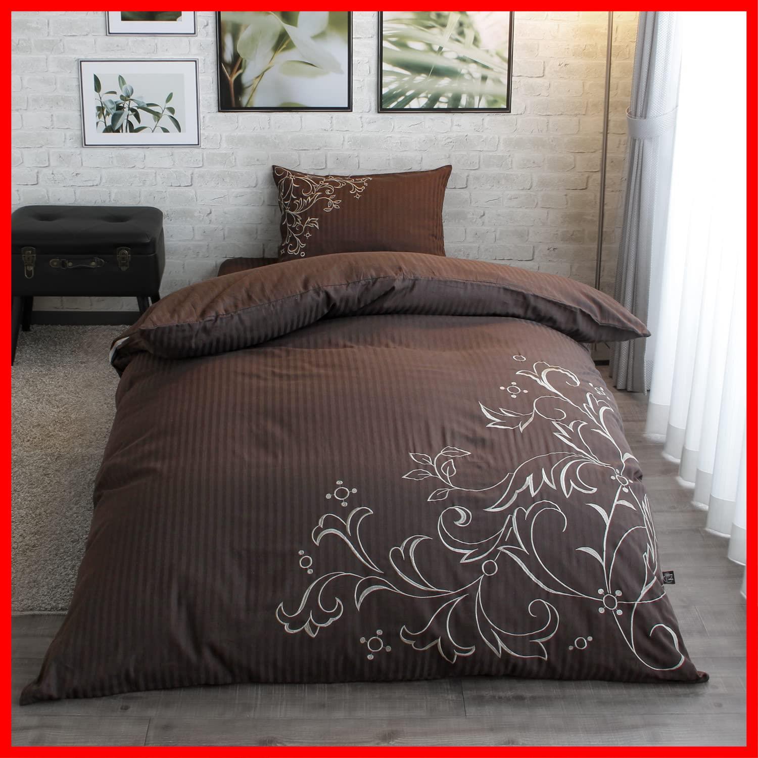 メリーナイト 掛け布団カバー inico (イニコ) 「クレール」 ブラウン シングルロング 約150×210cm 綿100% サテン織ストライプ 刺繍入り 上品な光沢感 洗える IN25051-93 | ニコニコshops