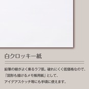 ●白クロッキー紙は、鉛筆、色鉛筆、パステル、水性ペンなど、様々な描画材と相性が良いラフな肌合いで、思うままに描画できます。