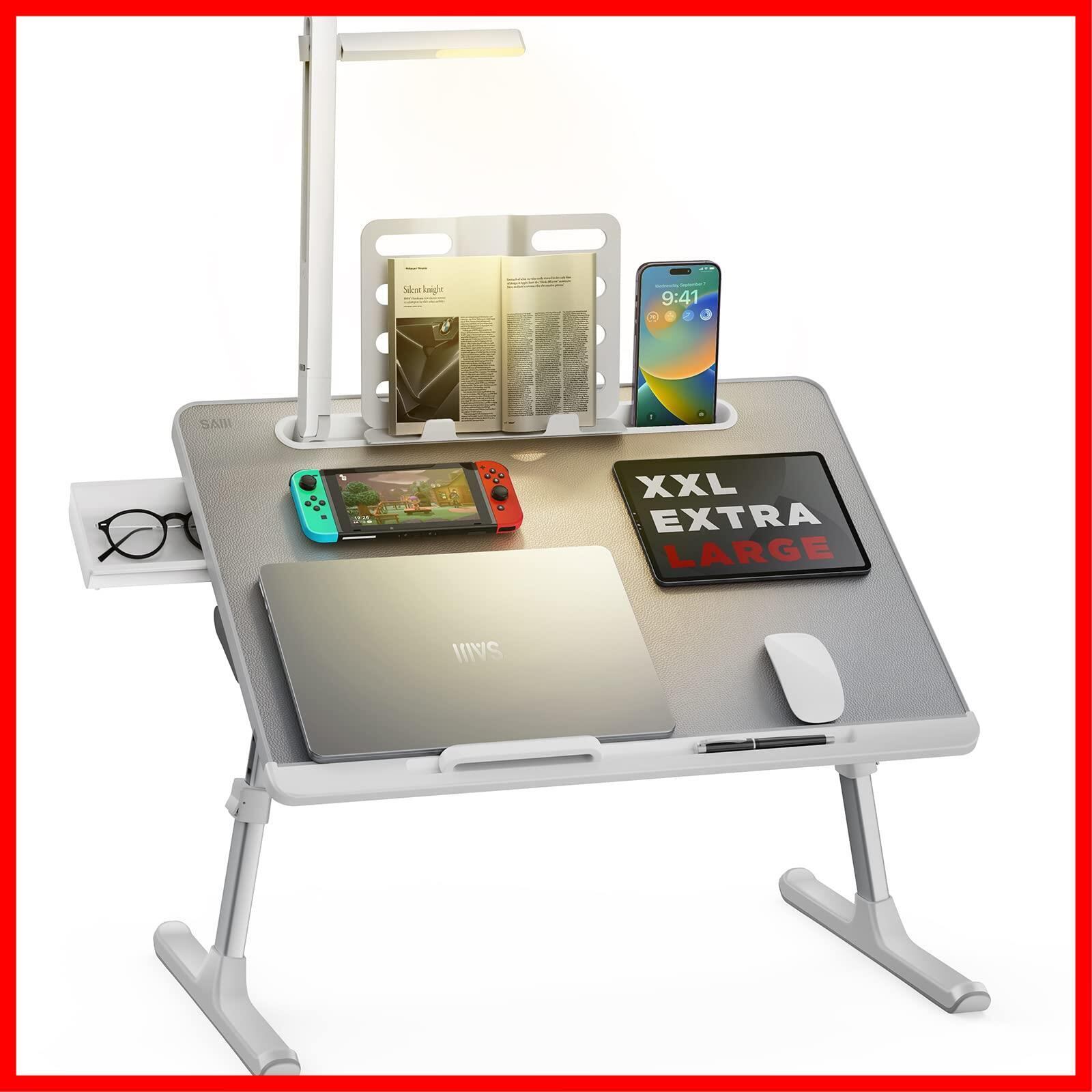 SAIJI 折りたたみテーブル LEDライト付け 収納可能3段明るさ調整 ミニテーブル「安定性強化版」机 ローテーブル ベッドテーブル ノートPCパソコンテーブル ちゃぶ台 大容量天板 角度 高さ調整 引き出し ブックスタンド付き 表面PVC加工 40kg荷重 パソコンテーブル 軽量 勉強 食事 一人暮らし K8 (グレー,60*45cm) | ニコニコshops