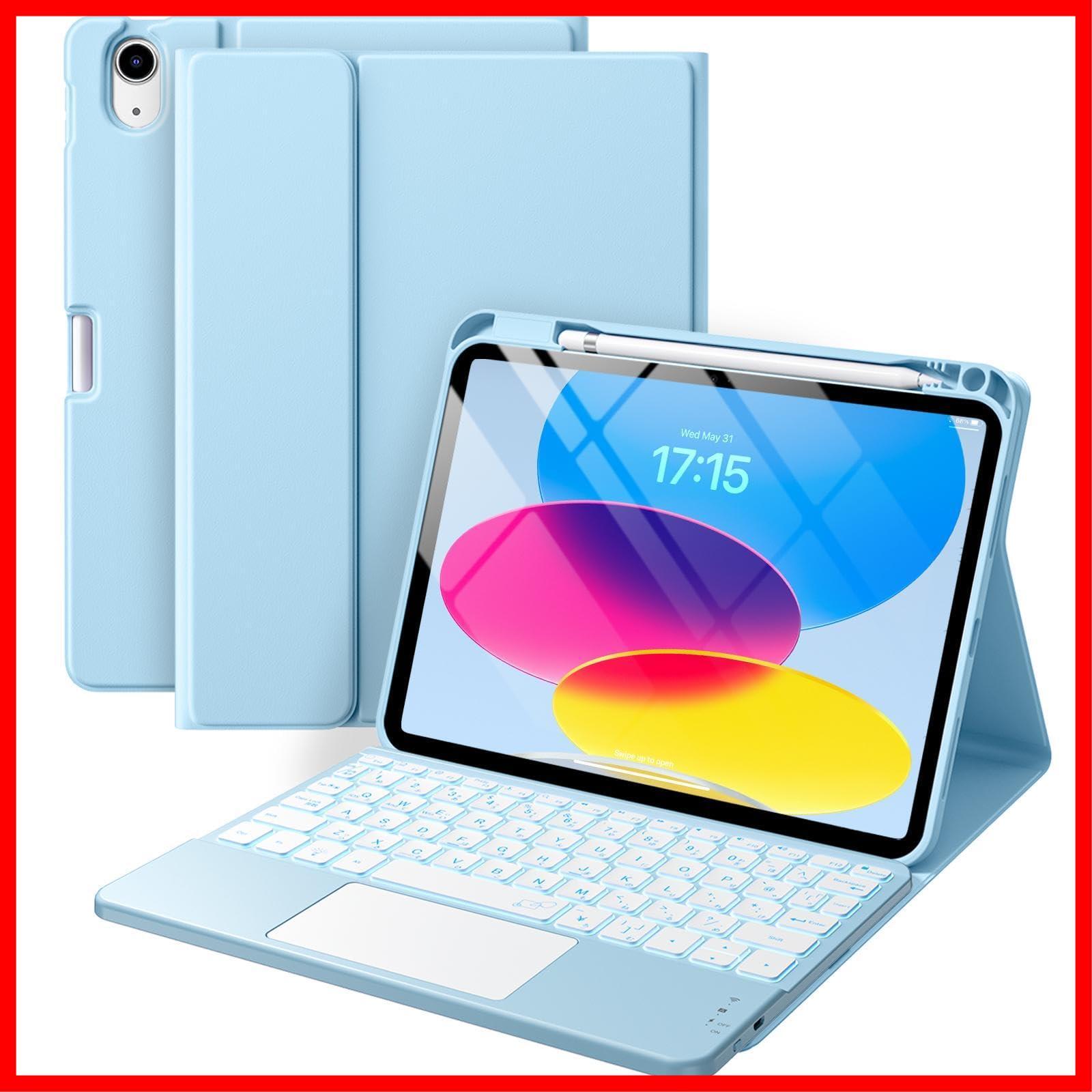 HETHOT iPad用 10世代 キーボードケース - 10.9インチ タッチパッド付き 日本語JIS配列 7色バックライト カラーキーボード 防汚素材 脱着式 セミシリコン製 450mah大容量バッテリー Apple Pencilホルダー付き Type-C充電 マグネット式 ケース A2696/A2757/A2777対応 iPad用 10世代 ケース | ニコニコshops