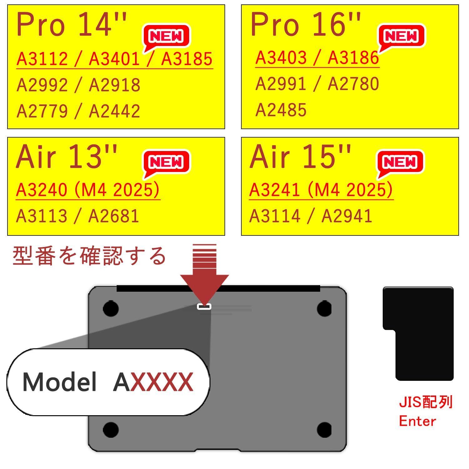 【対応機種】2025~2022発売新型MacBook Air 13.6/ Air 15 (M4 M3 M2 Pro Maxチップ)-A3240 A3241 A3113 A3114 A2941 A2681、 2024~2021発売MacBook Pro 14/ Pro 16 (M4 M3 M2 M1 Pro Maxチップ)-A3112 A3401 A3185 A3403 A3186 A2992 A2918 A2991 A2779 A2780 A2442 A2485 専用に設計される日本語JIS配列キーボード カバーです。