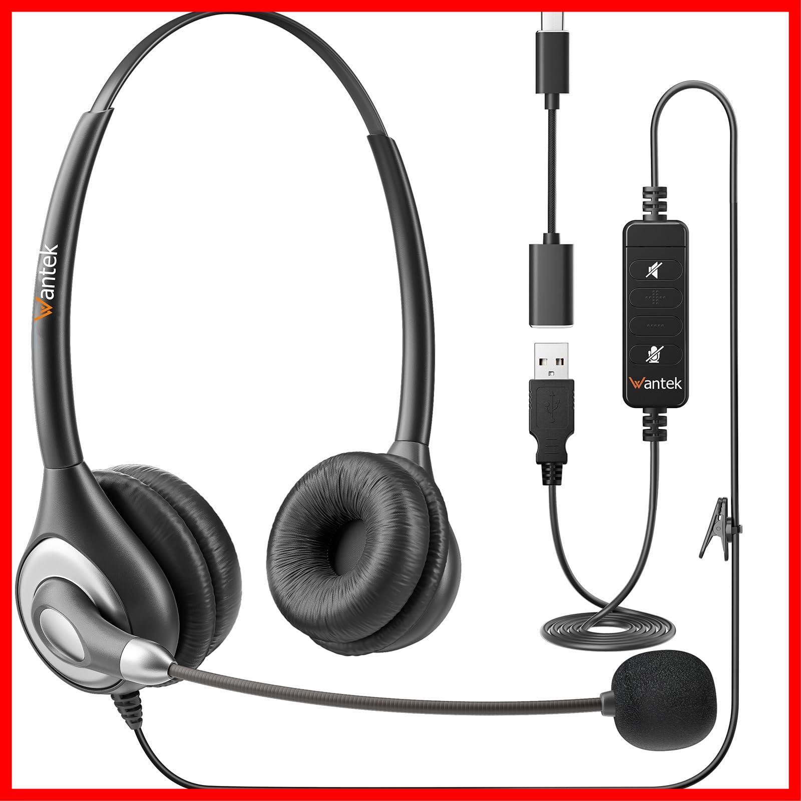 WantekヘッドセットUSB Type-C 両耳 ノイズキャンセリングマイク付きとオンライン制御有線PC用ヘッドホン Skype、Web会議、在宅勤務、業務用、リモートワーク、コールセンターに適用される クリアな通話 超軽量 超快適 【適格請求書発行対象】 | ニコニコshops