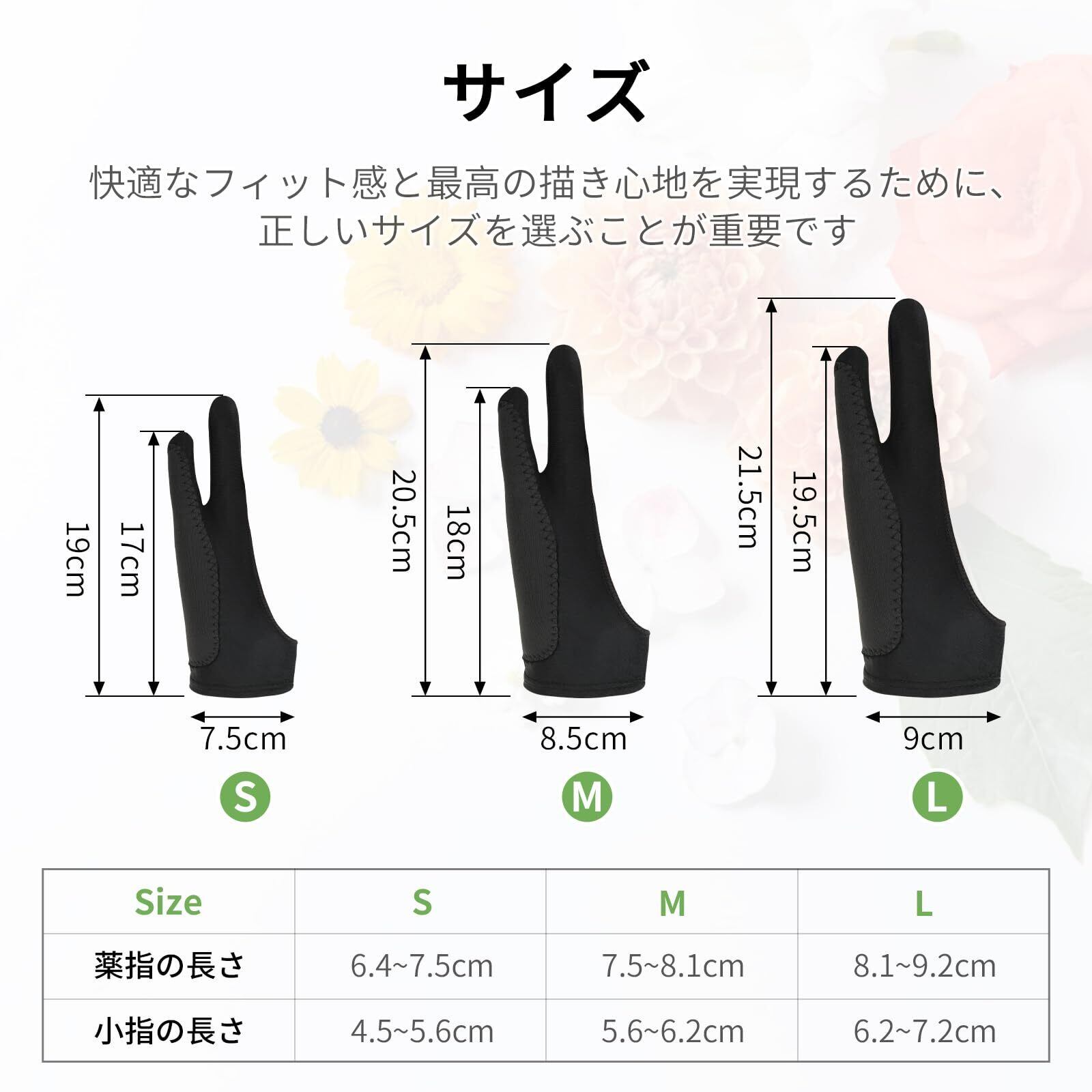【左右兼用・多サイズ展開】この製図用手袋は、右手でも左手でも使用可能な左右兼用設計です。三種のサイズをご用意しており、男女兼用、さまざまな手のサイズにフィットします。柔らかく滑らかな手触りがあり、絵画作業がスムーズになります