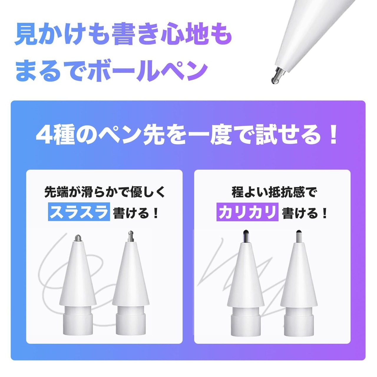 アップルペンシルをボールペン感覚で!【選べる4銃士】で、あなたに合った真のペン先が見つかる!Apple Pencil専用ペン先【Apple Pencil Pro対応】Pencil Tips Ball Pen 4種入り (ホワイト)
