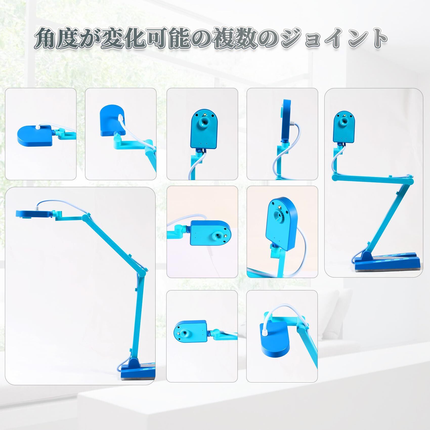 【ユニークなデザイン】青色がエレガントです。一般的なモニターに取り付けるタイプと異なり、本書画カメラをデスクに設置し、角度変化可能な五つのジョイントと360度回転できる上部のカメラにより様々な高さと角度からのカメラ撮影が可能です。