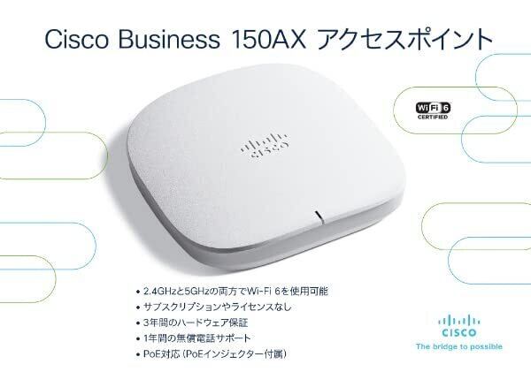 シスコ システムズ(Cisco) Wi-Fi6 2x2 アクセスポイント (CBW150AX-Q-JP) メッシュ接続 小規模オフィス/店舗向け 無線 LAN (デュアルバンド/802.11ax) PoEインジェクタあり 1 GbE ポート - 天井マウント 法人向け | ニコニコshops