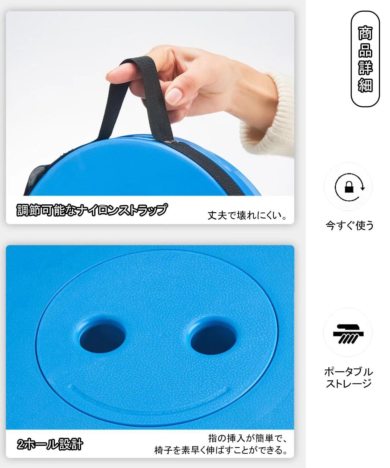 【簡単な使用と持ち運び】このキャンプ椅子の使用は非常に簡単で、両端を軽くねじるだけで迅速に展開または折りたたすことができます。収納は逆方向に少しひねりを入れながら両端を押すだけで収納可能。さらに、持ち運びに便利なハンドルが付いています。折りたたんだ状態では非常にコンパクトで、場所を取りません。