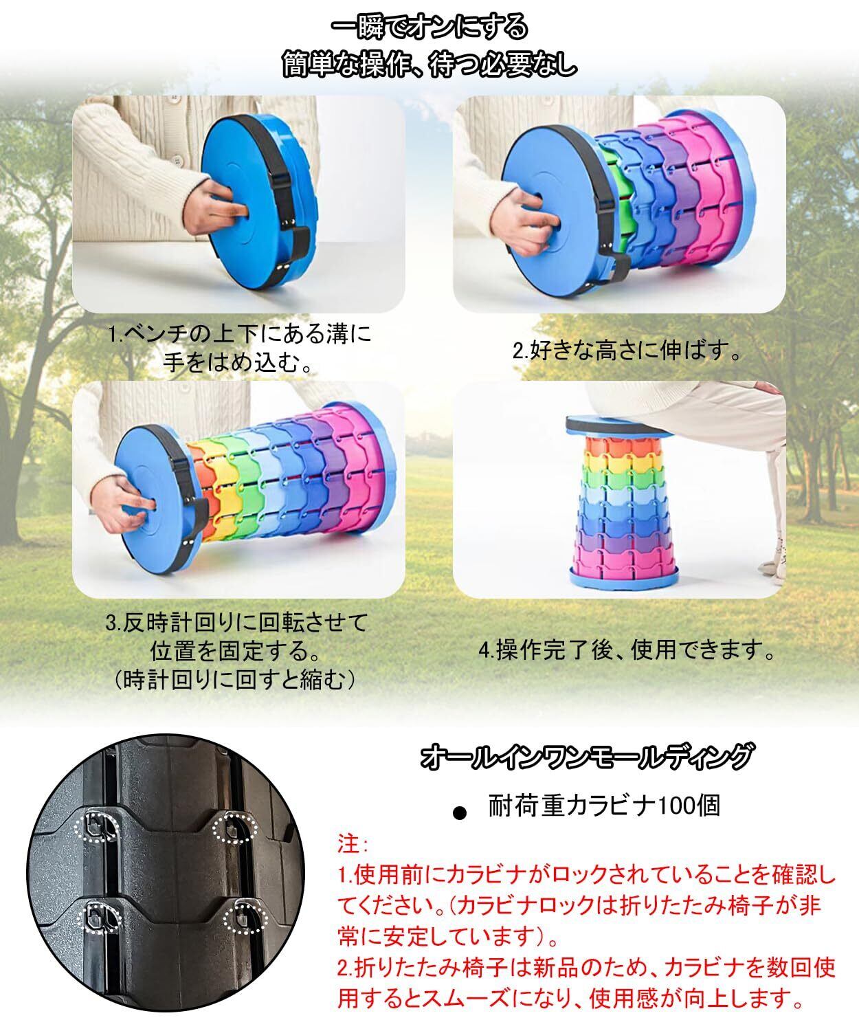 【高い耐荷重能力】わずか1キログラムの軽さにもかかわらず、当社の伸縮式アウトドアチェアは最大150キログラムの重量に耐えることができます。これは、頑丈なABSとポリアミド素材を使用し、9つの高さ調整と固定デザインを採用したためです。その結果、非常に安定性が高いです。