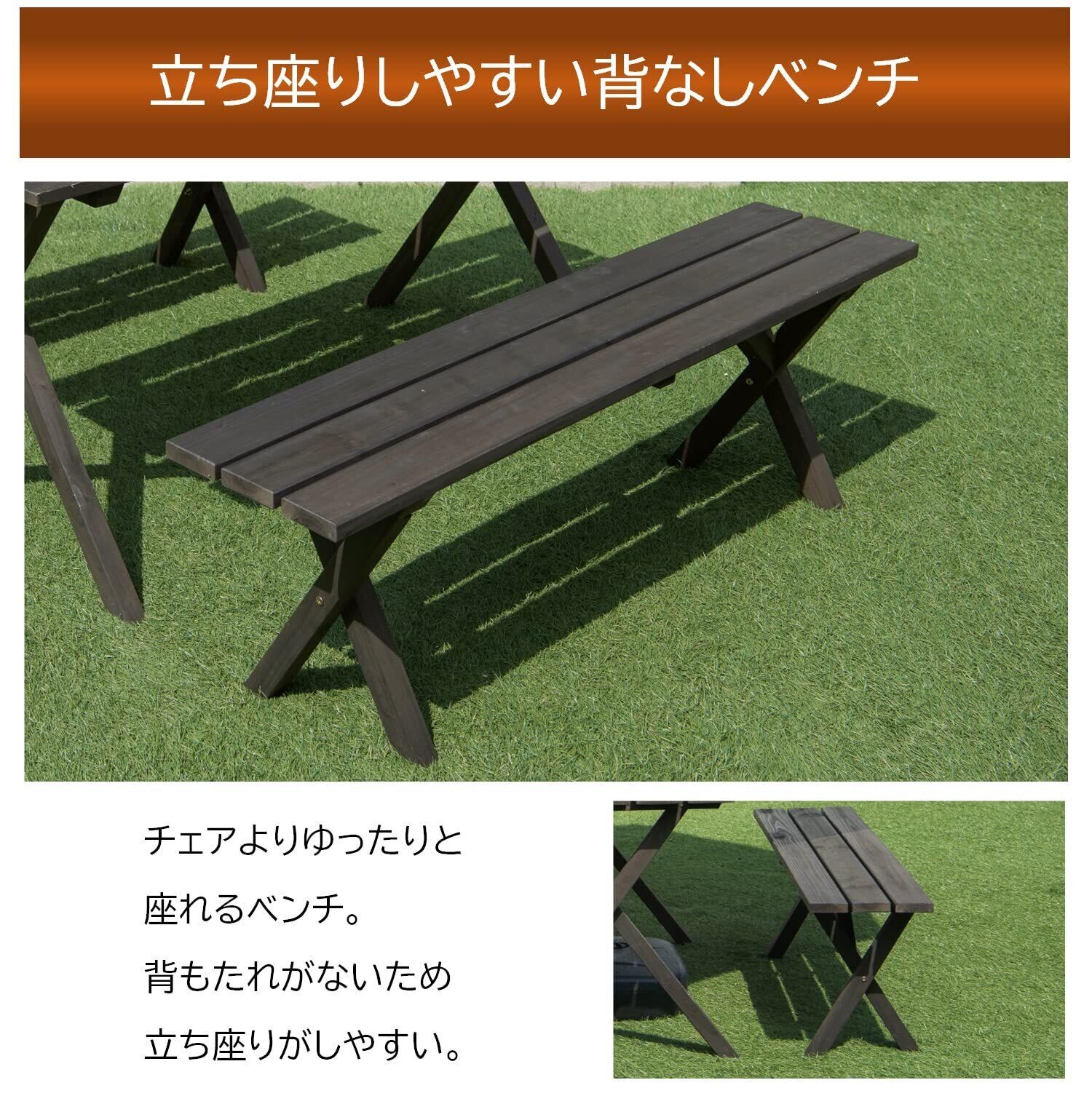 リビングアウト(Living Out) ガーデンテーブルベンチセット 木製 ダークブラウン テーブル/幅120×奥行59×高さ68cm、ベンチ/幅120×奥行28×高さ43cm 天然木 パラソル用ホール付 広々使えるスクエアテーブル ゆったり座れるベンチ 背もたれ無し | ニコニコshops