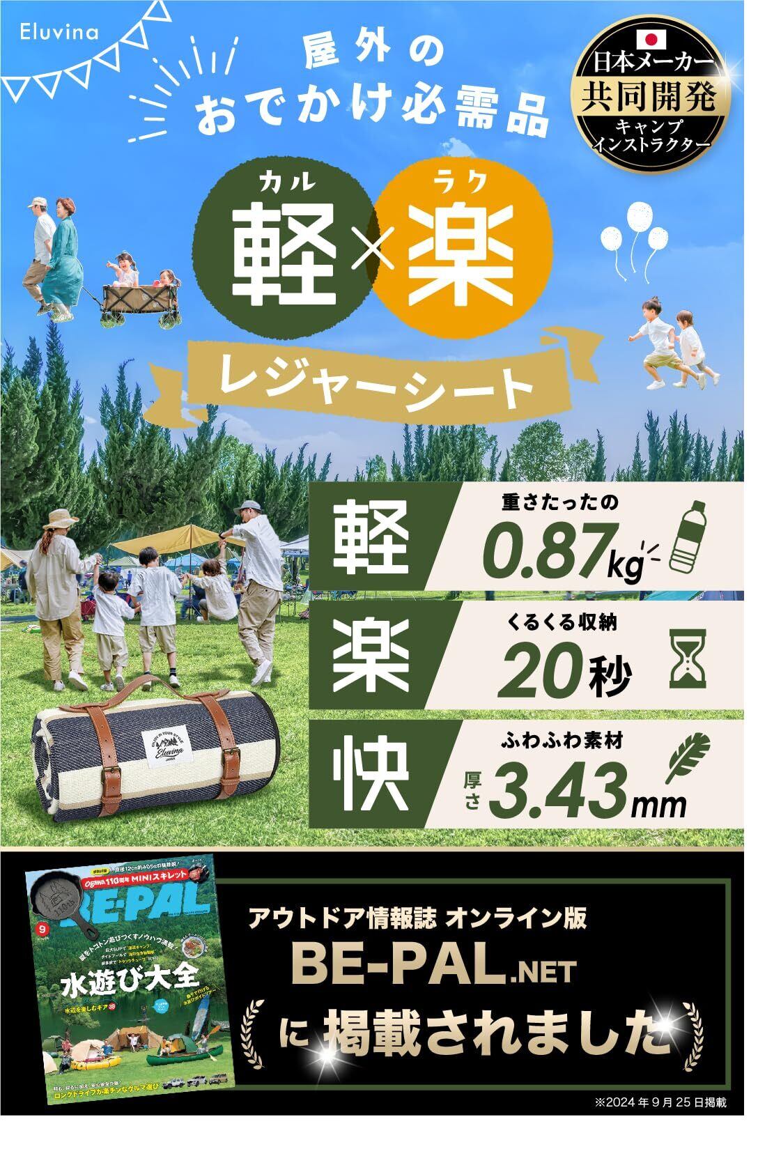 【BEPAL Net掲載品】 レジャーシート ピクニックシート 厚手 2~3人用 150x200cm 大判 コンパクト 防水 おしゃれ Eluvina(エルビナ) (ストライプ)