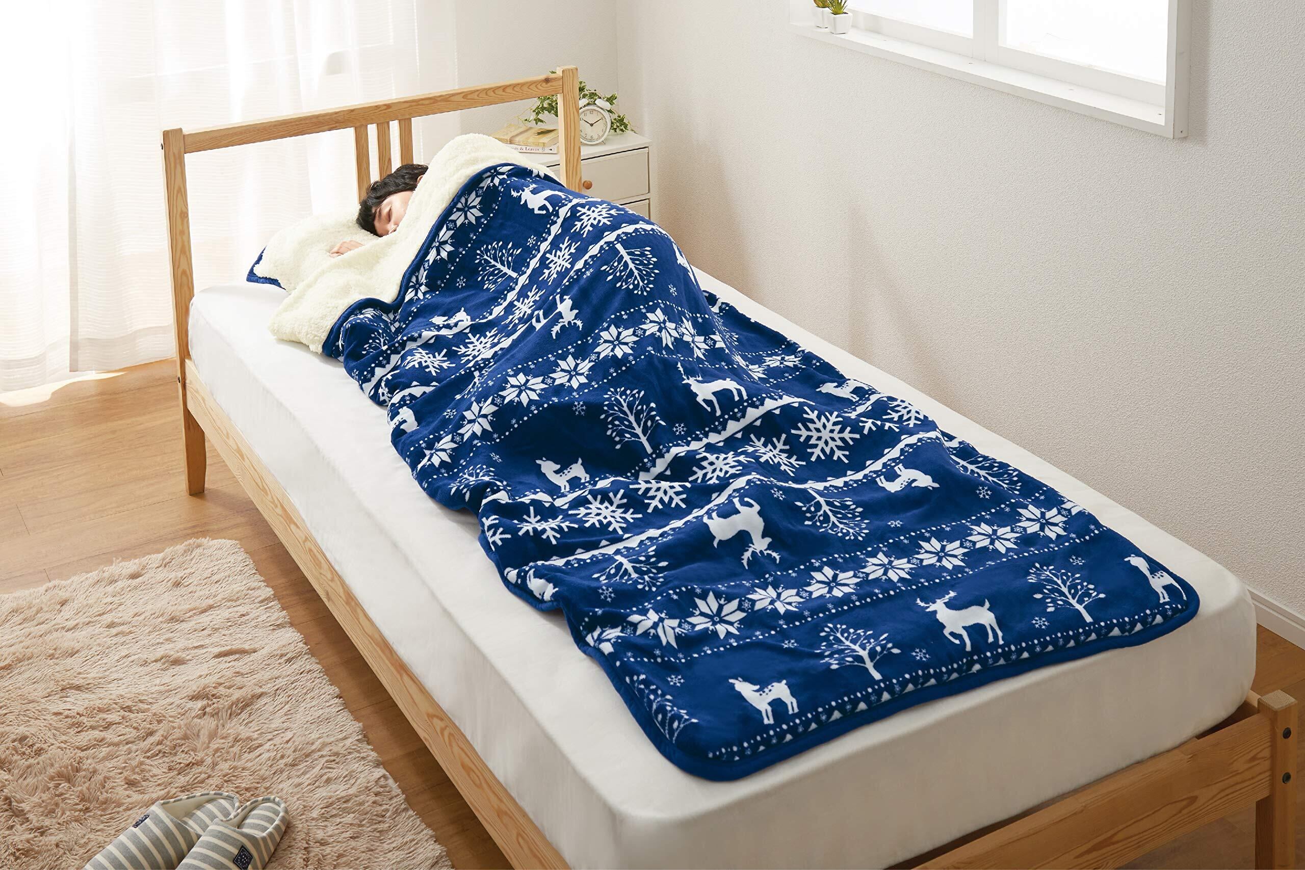 イデアルサービス(Ideal Service) あったか毛布寝袋 収納袋付き ネイビー 寝袋時:210×78×2cm 20265