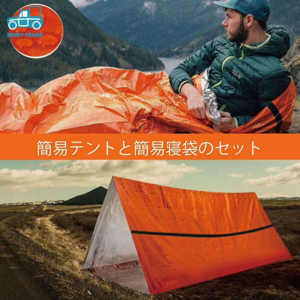 morytrade 簡易テント 寝袋 セット サバイバル エマージェンシー シート アルミ 防寒 防風 非常用 災害用 緊急用 (簡易テント+簡易寝袋)
