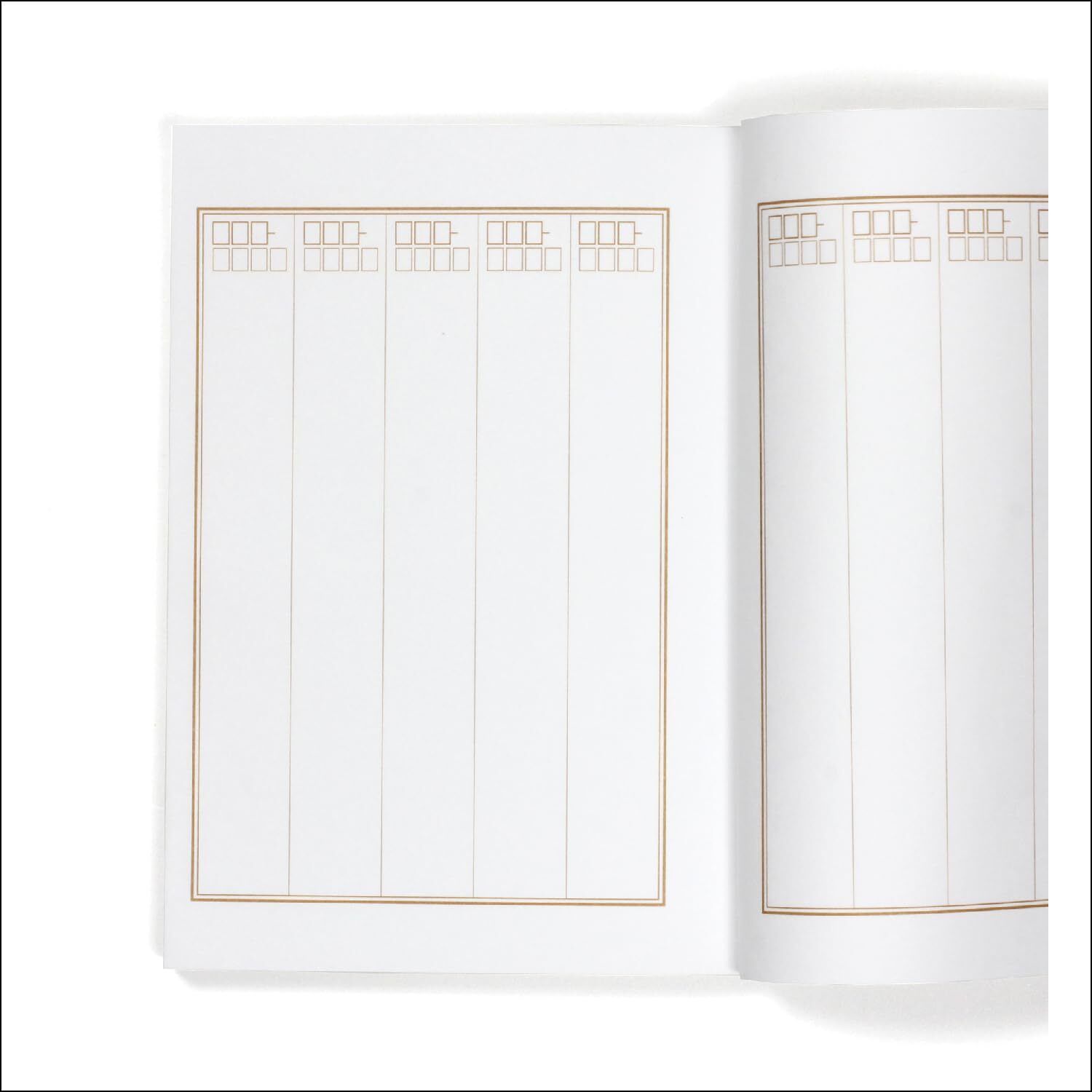 民宿やフィールドワークなどの宿帳に。展示会、展覧会、セミナーの受付に。ご列席のお客様名を大切に保管。5行書きで180名分記名可能。