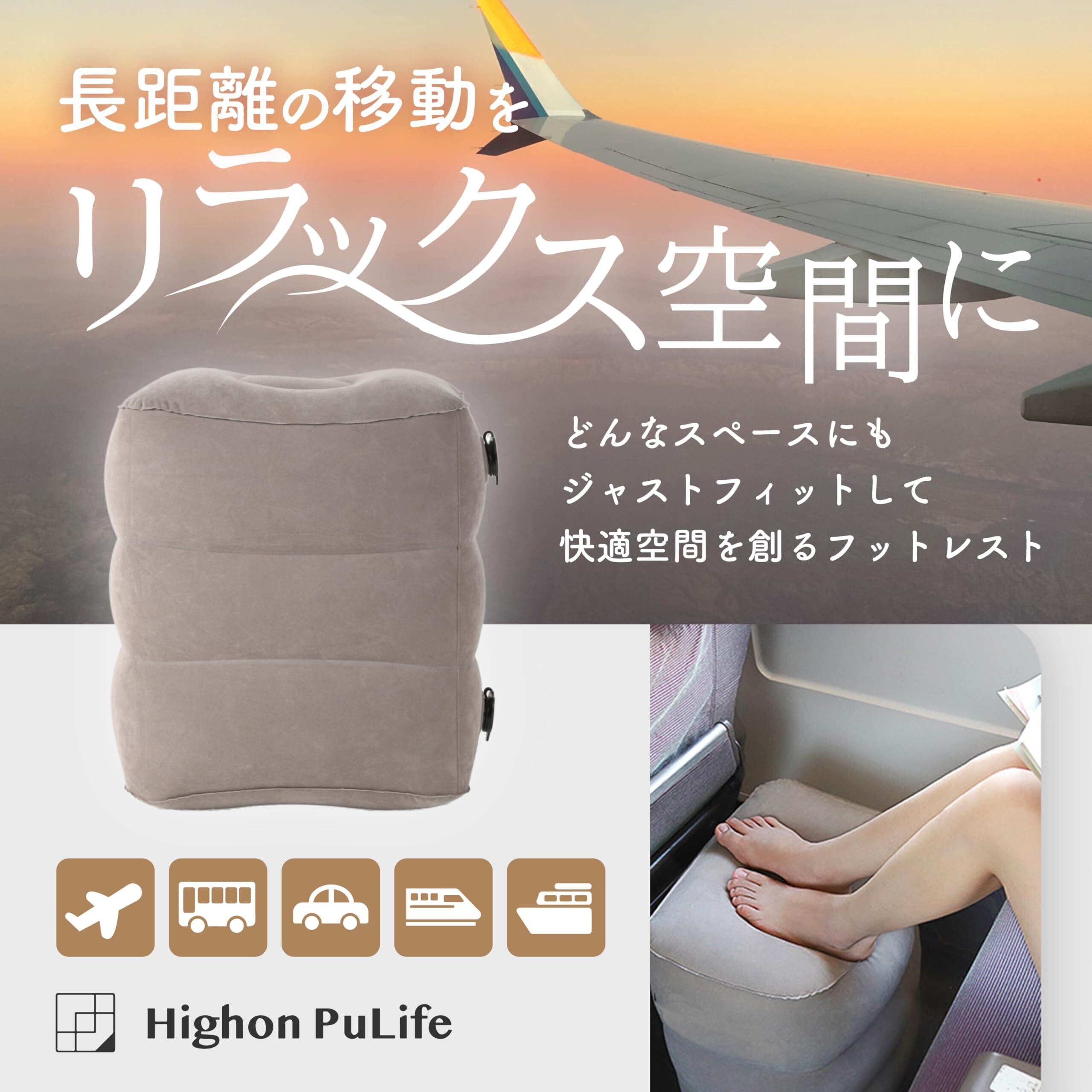 【2個セット】薄型 フットレスト 飛行機【最速_30秒】持ち運び楽 コンパクト ポンプ不要 最大空気 一発 機内 車内 快適 HighonPuLife