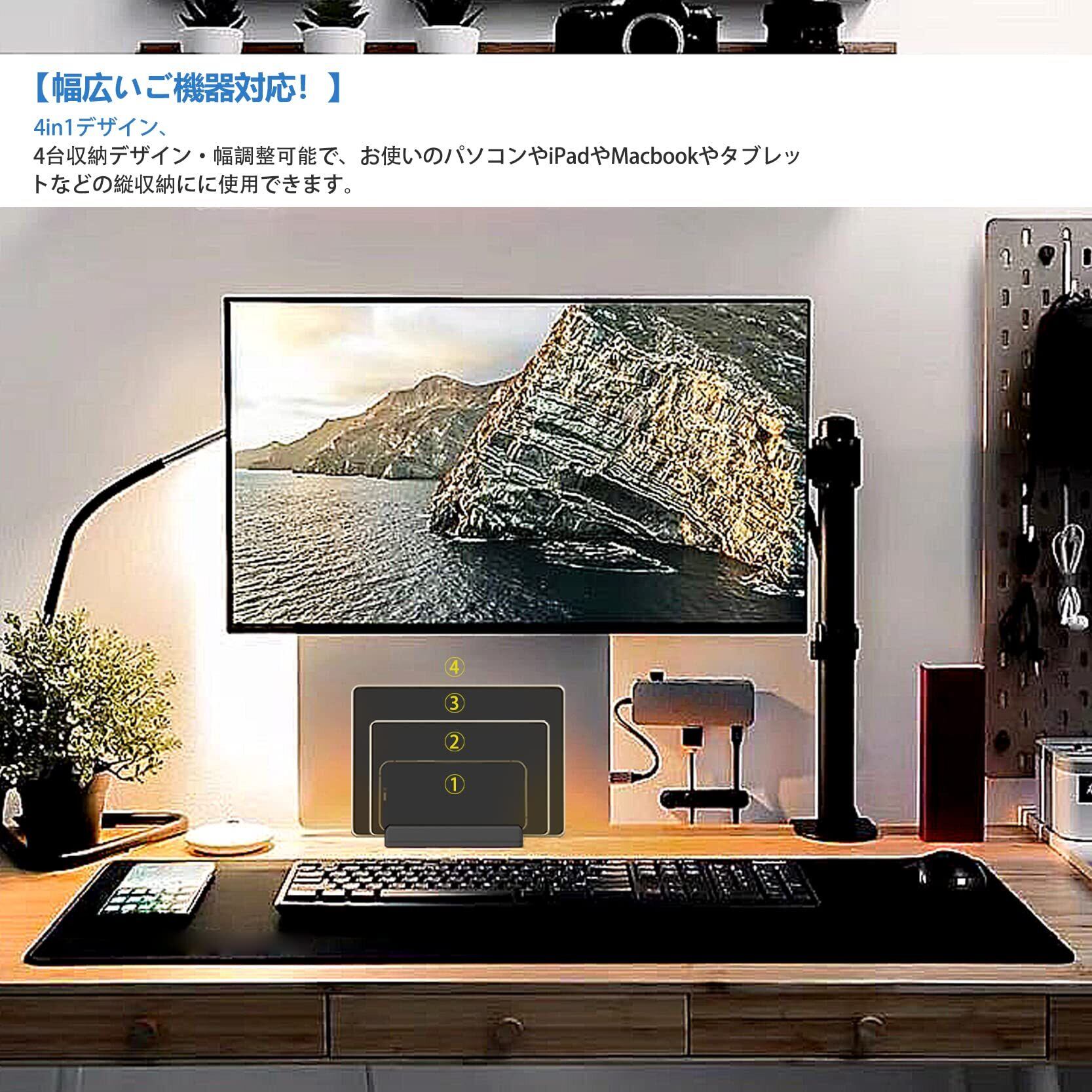 新型4in1ノートパソコンスタンド、縦置きスタンド、冷却スタンド、幅を調整可能、アルミニウム素材、省スペース、滑り止めで、安定感があります。MacBook Pro/Air/Microsoft Surfaceのすべてに対応し、新デザインを採用しています黒