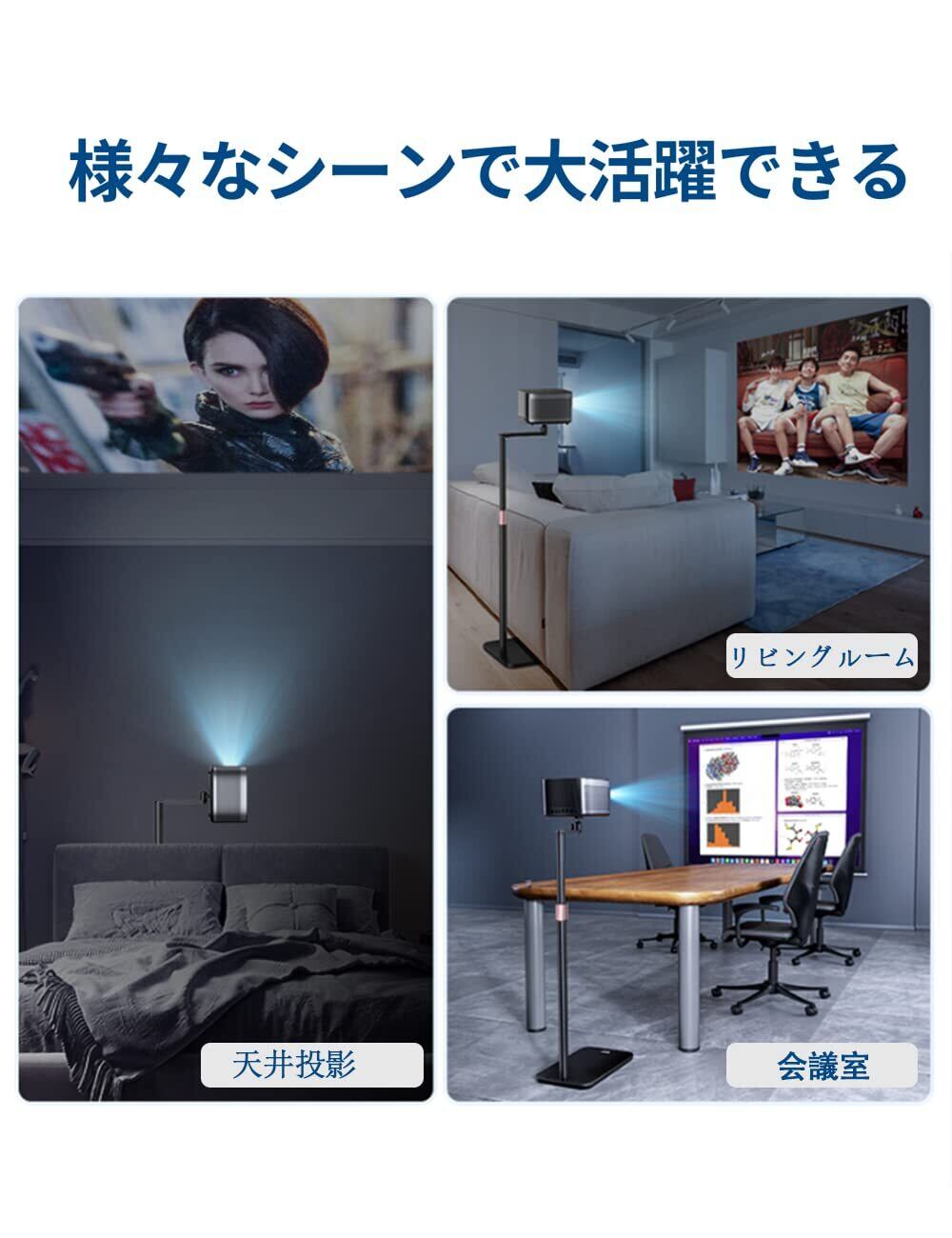 【角度調整】360°回転可能な自由雲台は場所や角度に合わせて自由自在に調整。プロジェクタースタンドは上下・傾き・水平方向を簡単に調節でき、操作性に優れています。天井は即座に映画館に変わります。