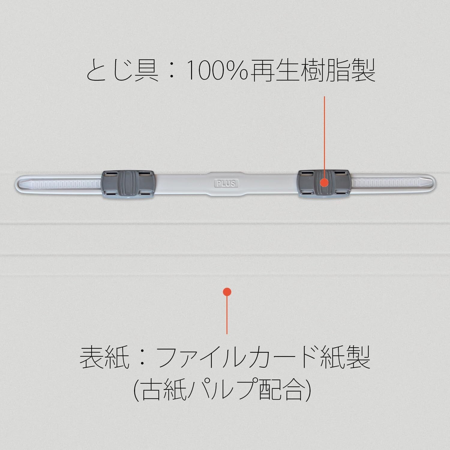 【材質】表紙:ファイルカード紙(古紙パルプ配合)、とじ具:再生PP100%