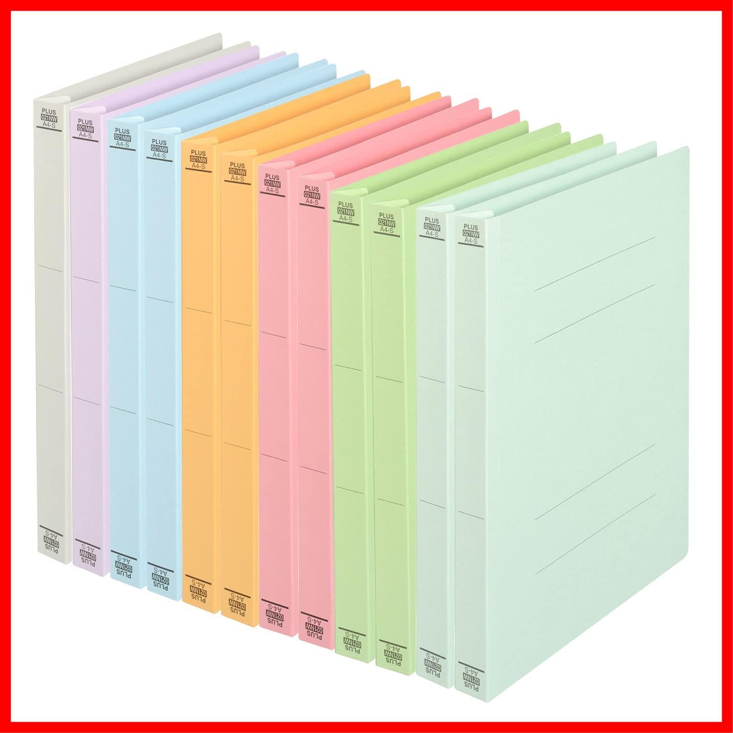 プラス フラットファイル 厚とじ A4 タテ 樹脂製とじ具 12冊 7色アソート NO.021NW 79-120