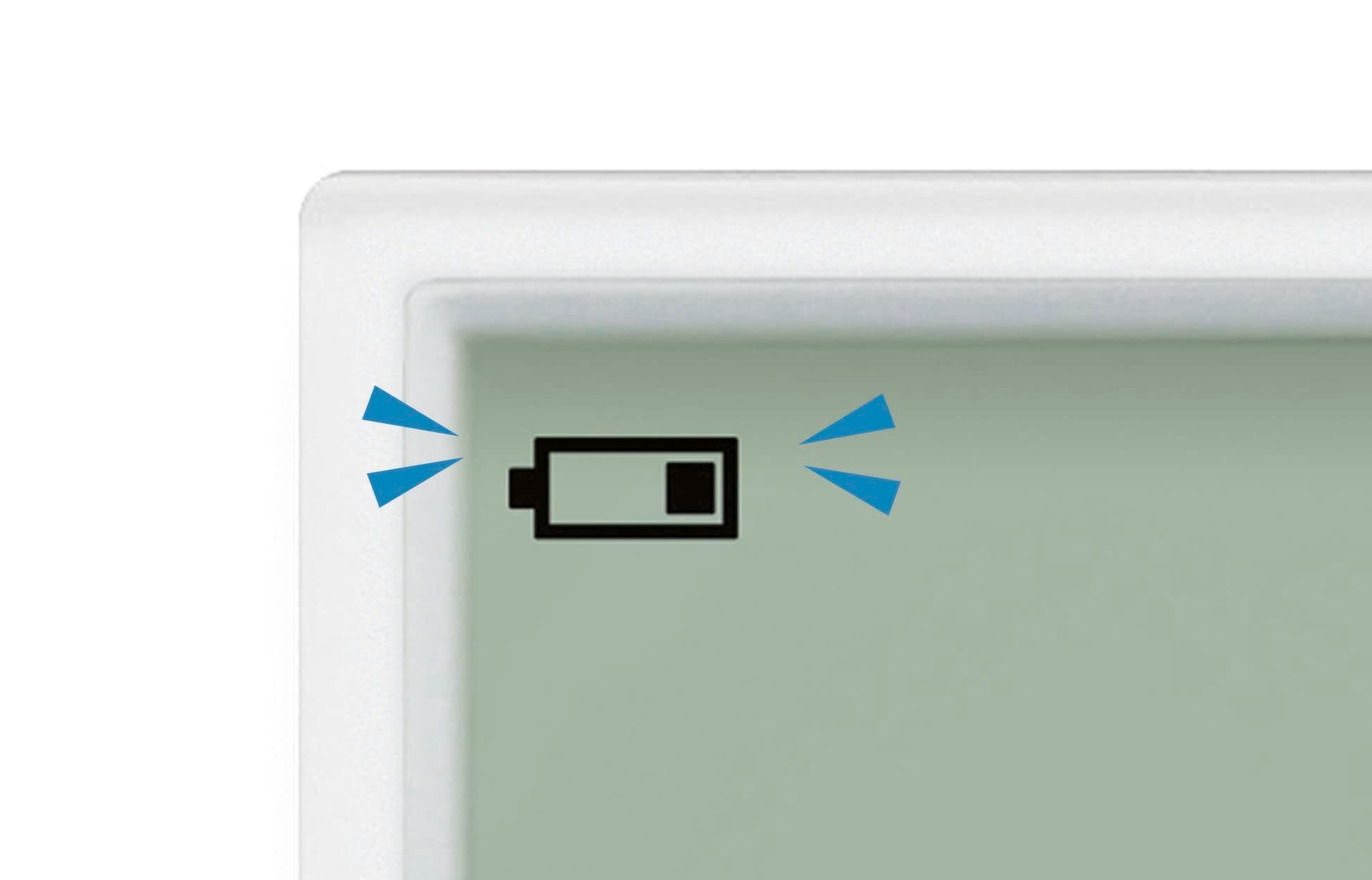 電池残量が少なくなると、マークが現れ点滅します。電池交換の必要なタイミングがわかり、突然の電池切れを防ぎます。