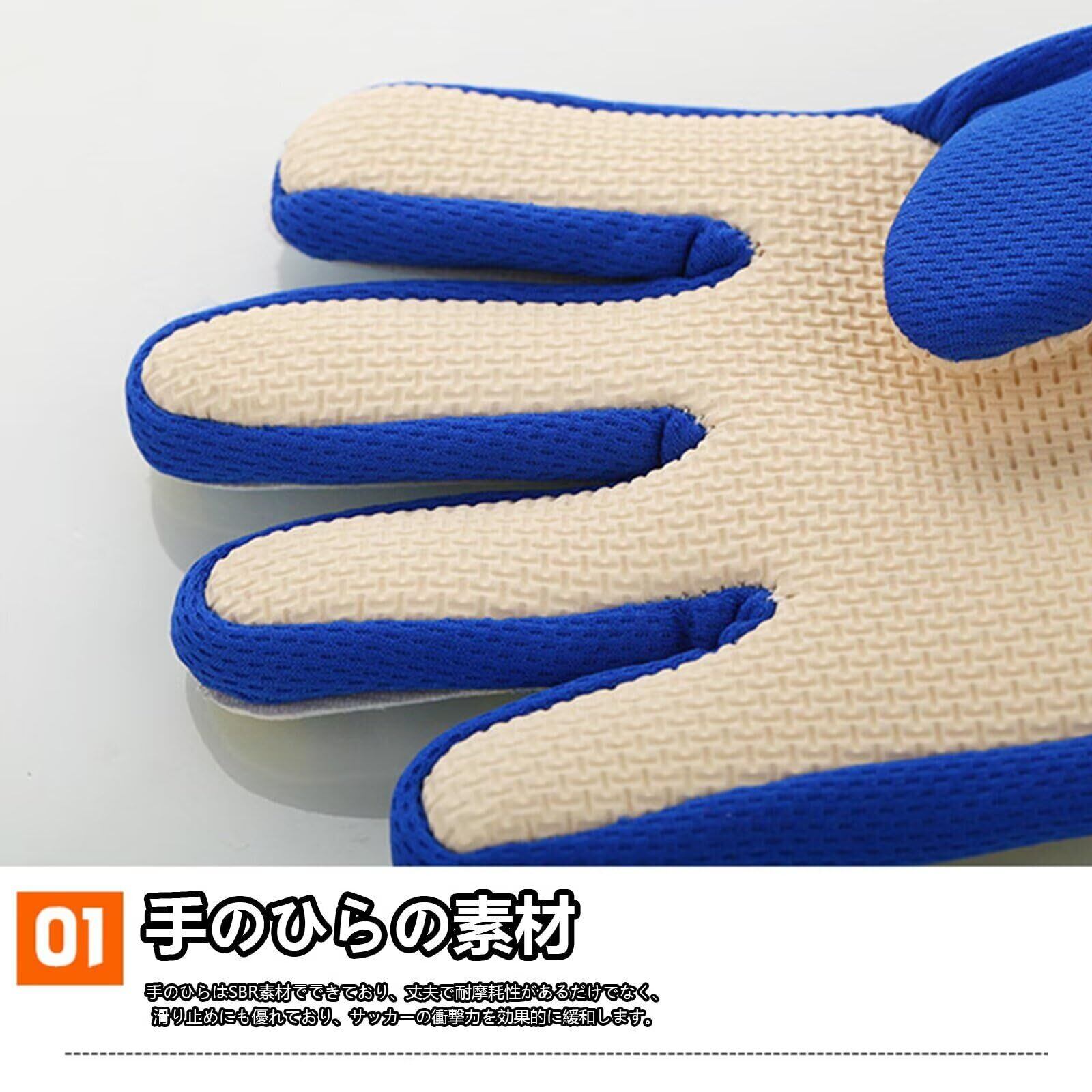 ZVCXOE サッカー グローブ キーパーグローブ サッカー手袋 ゴールキーパーグローブ スタンダード 耐摩耗性 通気性 滑り止め 練習 試合用5/6/7 子供用 ブルー