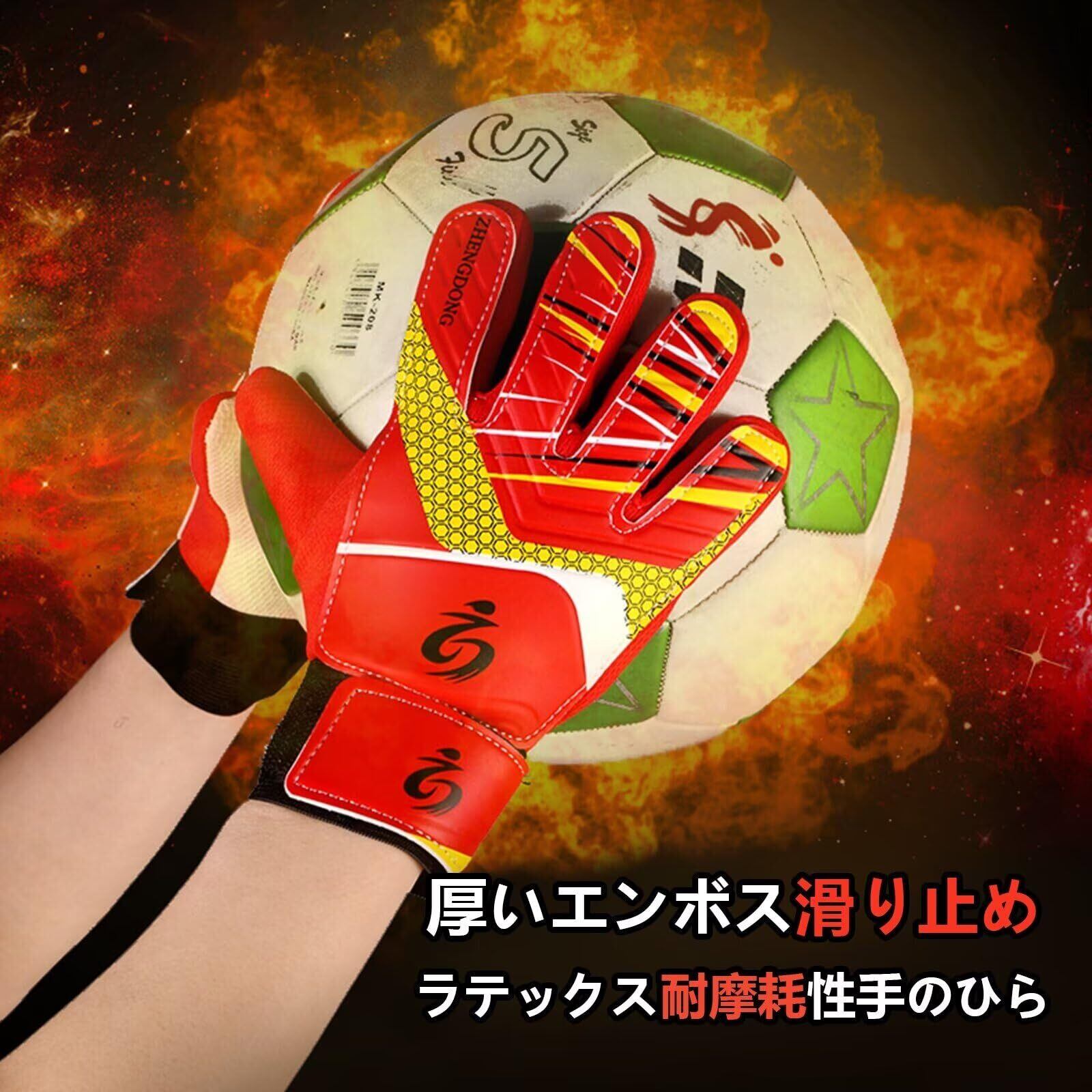 【優れたグリップと保護】キーパーグローブの手のひらには、滑り止めのラテックスが施されています。この特殊な加工により、サッカーボールをしっかりと掴み、ゴールを守る際の安定性を提供します。