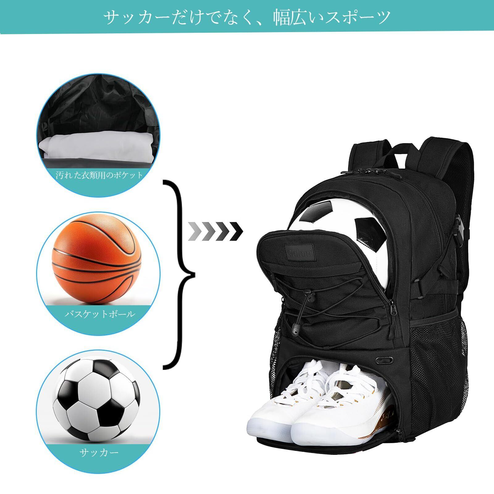 [MIUTKPRO] サッカーリュック サッカーボール収納 バスケットボール対応 多機能35L大容量バッグ 防撥水 軽量設計 学生・大人用 通学・通勤・旅行に最適 シューズ収納 乾湿分離ポケット付き スポーツバッグ | ニコニコshops