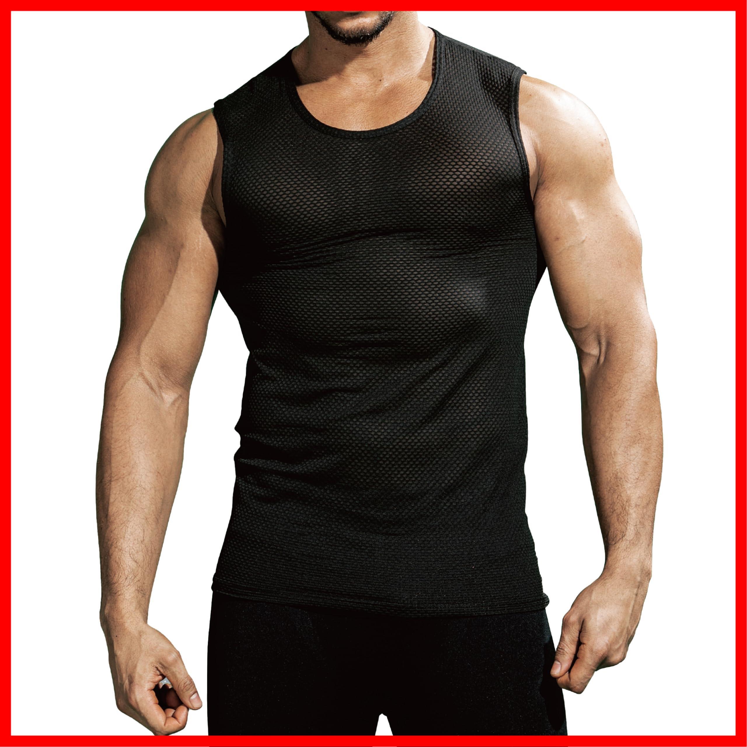 おたふく手袋 オールシーズンインナー ノースリーブ 丸首 3Dファーストレイヤー [吸汗速乾 消臭 メッシュ コンプレッション メンズ] JW-520 ブラック M
