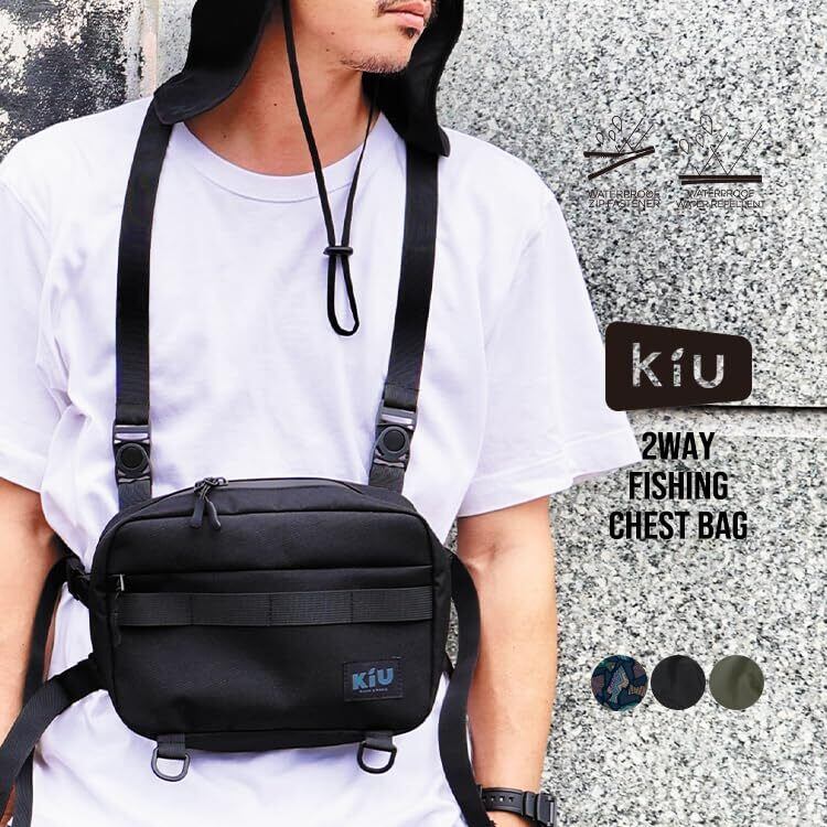 KiU キウ 2wayフィッシングチェストバッグ 2WAY FISHING CHEST BAG 防水 撥水 ユニセックス メンズ レディース 男女兼用 釣り ショルダーバッグ ポケット 止水ファスナー 丈夫 アウトドア ジオメトリックフィッシュ LOF05-409
