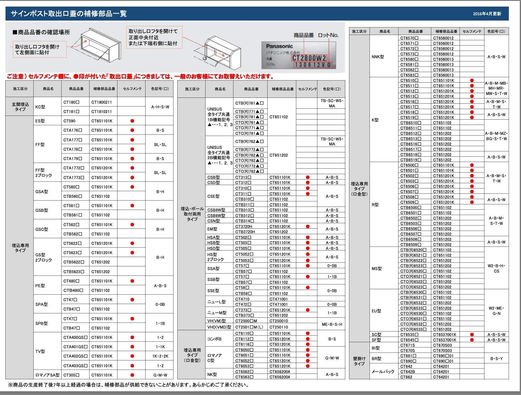 パナソニック Panasonic【CT651101L】ポスト1Bタイプ用 取出口ふた (CT651101Kの後継品)
